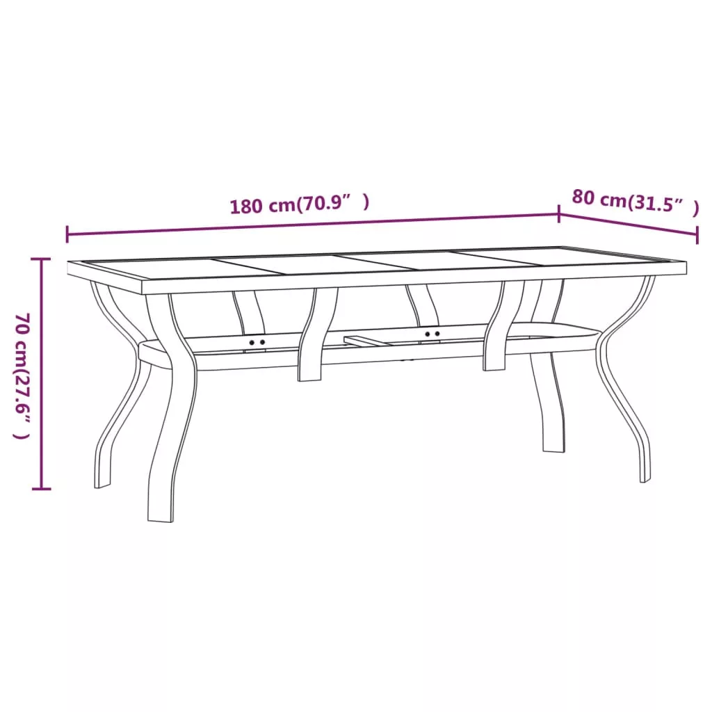 - Masszív váz: Az acél váznak köszönhetően ez a kültéri asztal erős és tartós, így hosszú élettartamú.