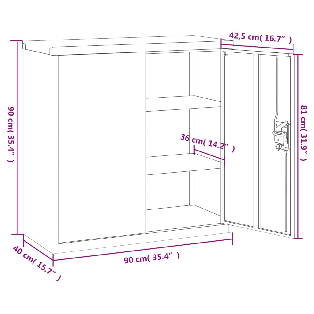 vidaXL fekete acél irattartó szekrény 90x40x90 cm