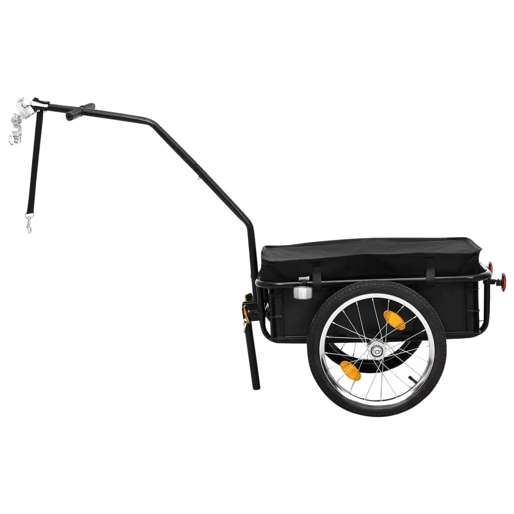 A nagy teherbírású acél vázszerkezetnek és az ütésálló műanyag szállítóládának köszönhetően ez a kerékpár-utánfutó/kézikocsi rendkívül erős és tartós. A mellékelt levehető nylon huzat időjárás- és vízálló. A fokozott biztonság érdekében jól látható színes reflektorokkal lett ellátva.
