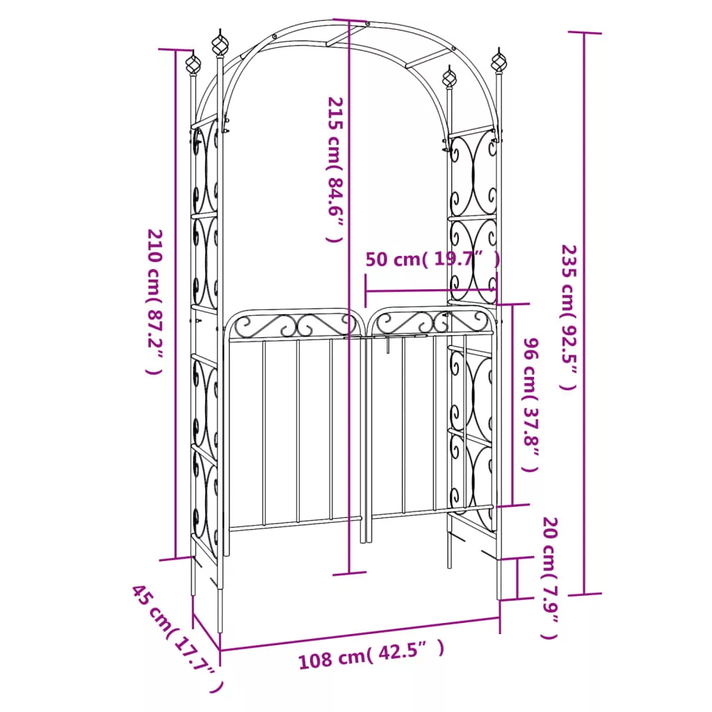 Ez a szemet gyönyörködtető, kapuval ellátott kerti boltív klasszikus stílust és praktikusságot visz kültéri környezetébe.