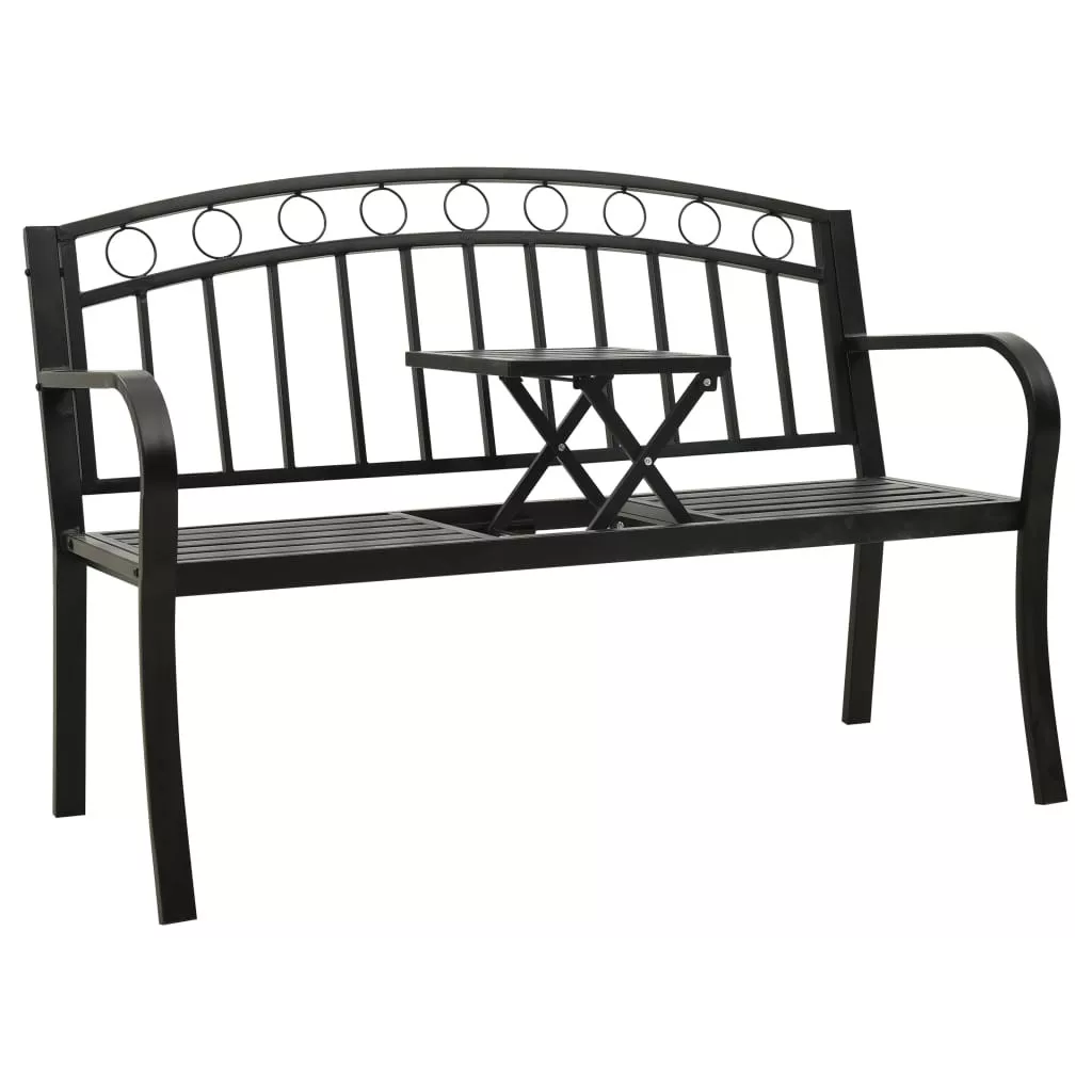 - Egyedi kialakítás: Az asztal a kültéri pad közepén helyezkedik el, így kézközelben tarthatja a harapnivalókat és az italokat.