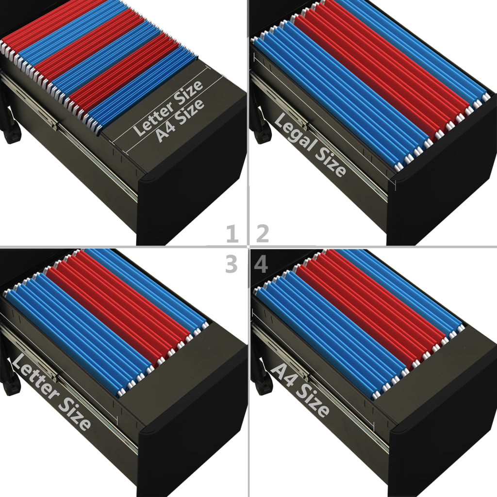 Ez az irodai szekrény acélból készült, így tartós és könnyen tisztítható. A 3 fiókkal és 1 zárral ellátott iratszekrényben rendezetten és biztonságban tarthatja iratait. Minden fiók 1 kivehető akasztórúddal van felszerelve, amely szabadon kombinálható levél méretű, legal méretű és A4-es függő iratmappa tárolására. A szekrény egy ceruzatartó tálcával is rendelkezik az asztala rendben tartásához. A 3 részes golyóscsapágyakkal ellátott fiókok zökkenőmentes nyitást és zárást biztosítanak, így még fokozott terhelés mellett is teljesen kihúzhatók.