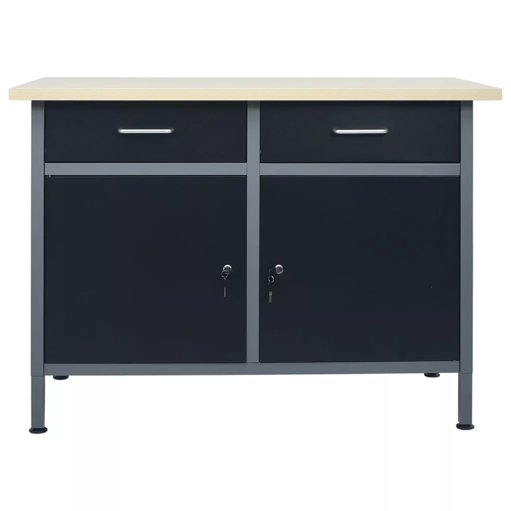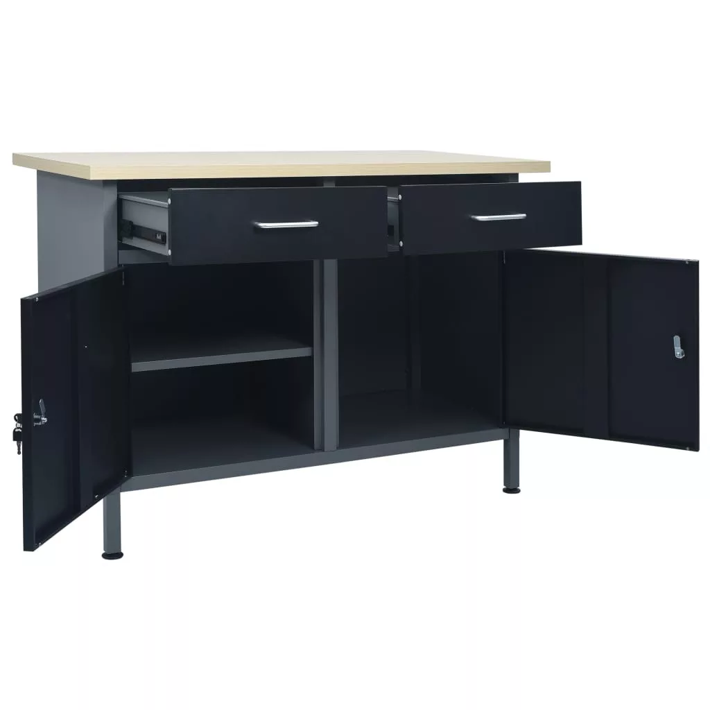 A nagy, masszív asztallap stabil helyet biztosít barkácsmunkáihoz. A munkapad 2 fiókkal lett ellátva, így rendszerezve tárolhatja különböző szerszámait, alkatrészeit és kellékeit, például csavarokat, szögeket és ragasztószalagokat. A fiókok golyóscsapágyas szerkezettel rendelkeznek, így könnyen kihúzhatóak. A nagyobb szerszámokat a két, zárható ajtós szekrényben tárolhatja, melyekben könnyen helyet találhat fúróinak, kábeldobjainak és csiszolóinak.