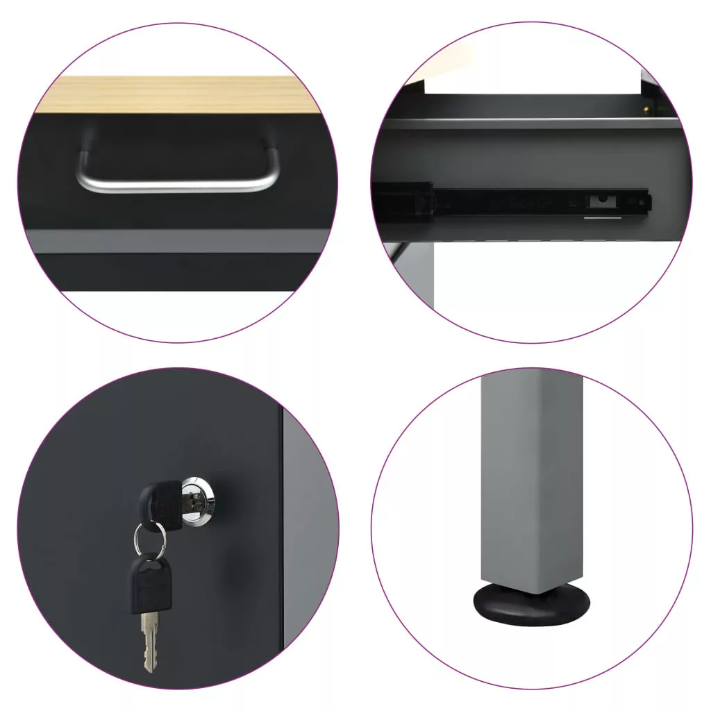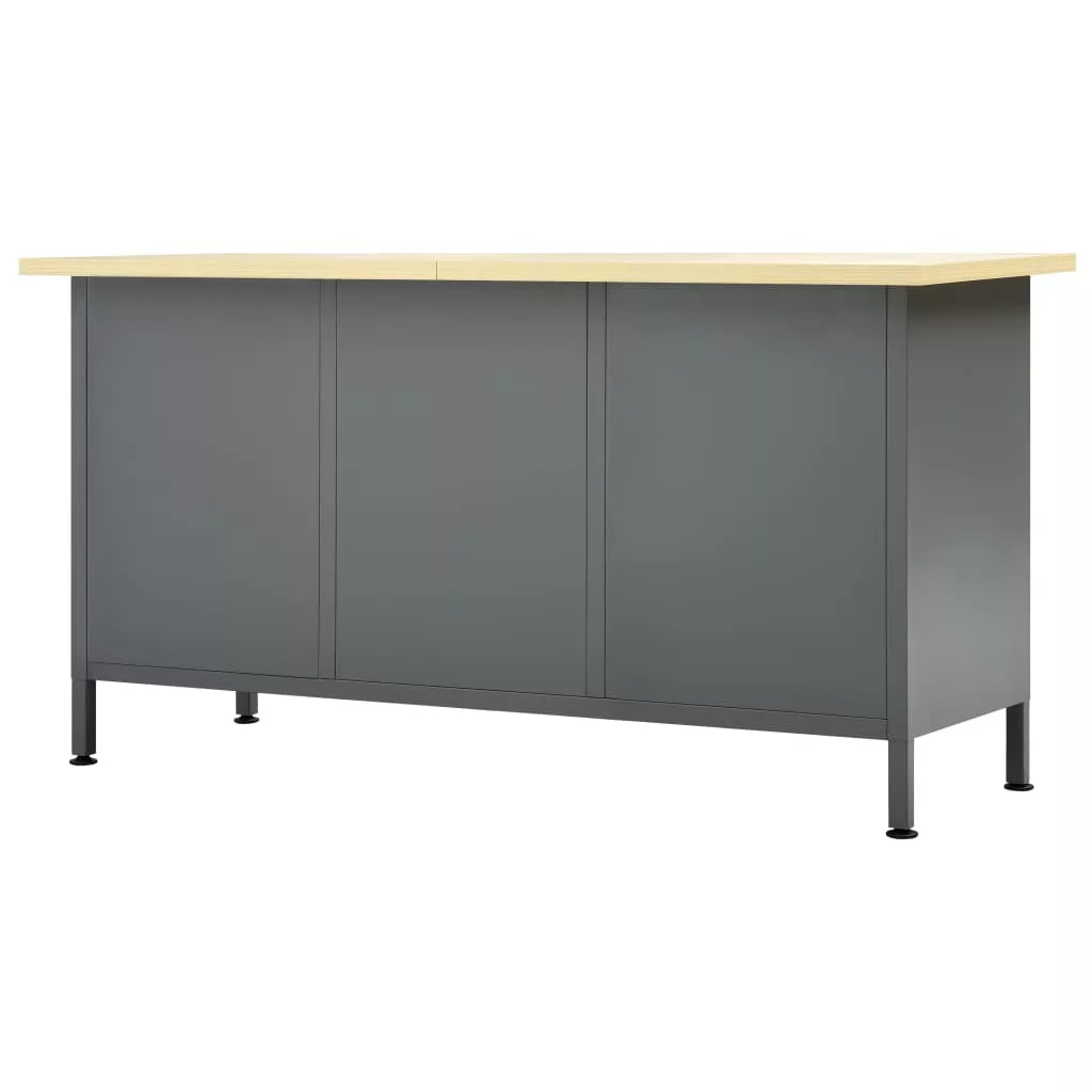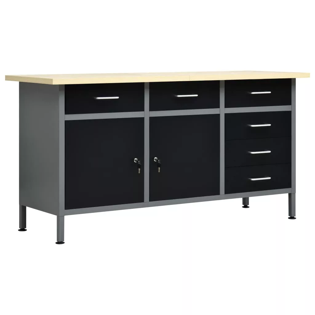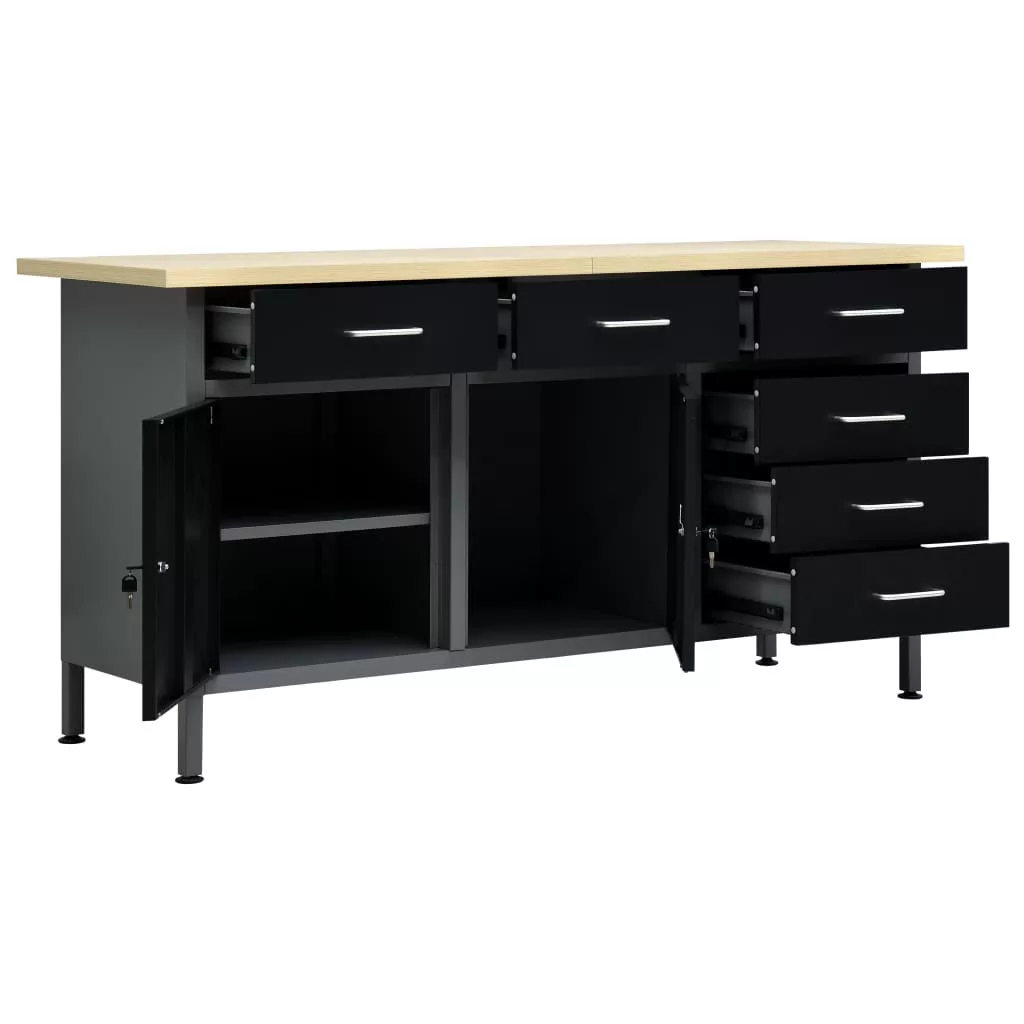A nagy, masszív asztallap stabil helyet biztosít barkácsmunkáihoz. A munkapad 6 fiókkal lett ellátva, így rendszerezve tárolhatja különböző szerszámait, alkatrészeit és kellékeit, például csavarokat, szögeket és ragasztószalagokat. A fiókok golyóscsapágyas szerkezettel rendelkeznek, így könnyen kihúzhatóak. A nagyobb szerszámokat a két, zárható ajtós szekrényben tárolhatja, melyekben könnyen helyet találhat fúróinak, kábeldobjainak és csiszolóinak.