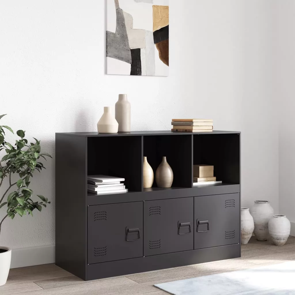 vidaXL fekete acél tálalószekrény 99 x 39 x 73 cm