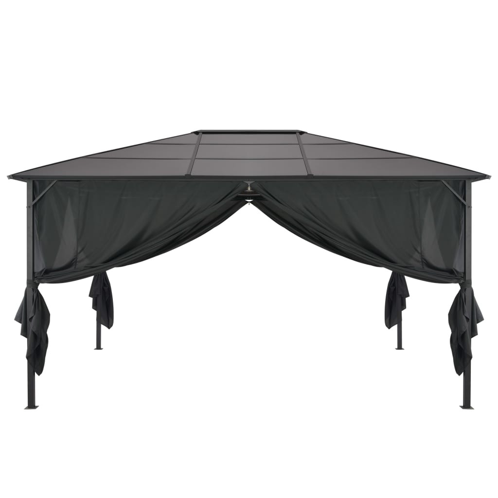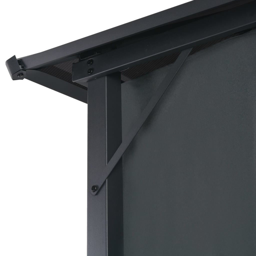 A 6 mm vastag, UV sugárzásnak ellenálló, PC lemezből készült tető elrejti a szeme elől az erős napfényt, valamint a közvetlen napfényből származó káros UV sugarakat. A pavilon szilárd váza erős alumíniumból és acélból készült, ezért hihetetlenül ellenálló a rozsdával szemben és rendkívül stabil. A pavilon 4 oldalfüggönyt tartalmaz, amelyek kihúzhatóak rossz idő esetén. A függönyök könnyű felcsatolásához tépőzárakkal van felszerelve.