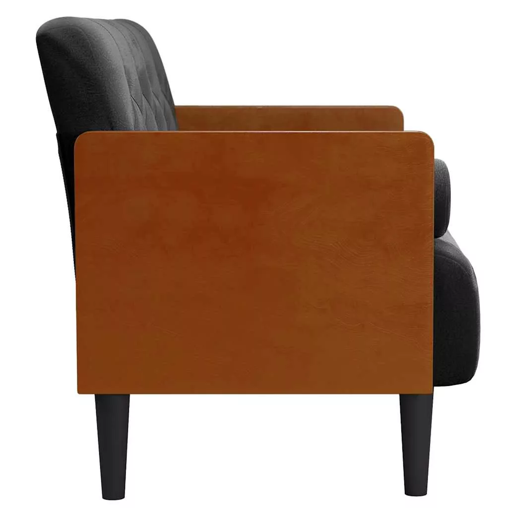 - Szemet gyönyörködtető design: Ez a kanapé a bársonyszövet és a rétegelt lemezből készült karfák kombinációját mutatja be, ami fokozza a különböző stíluselemek fúzióját, és modern és hagyományos enteriőrökhöz egyaránt illeszkedik.