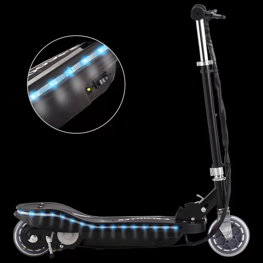 A rollert a 3 színű LED-csík nem csak vonzóbbá teszi, de sötétben is jobban látható lesz. Ez az elektromos roller simán és csendesen jár, és elektromos motorral rendelkezik. Nagy teljesítményű akkumulátora akár 30 percre keresztül működik (a merülés függvényében). A roller hátsó fékkel rendelkezik. Az alumíniumból és acélból készült elektromos roller masszív és összecsukható testtel rendelkezik. A kormánykar a gyermekek magasságához igazítható. A nagyszerű összecsukható kialakítás megkönnyíti a tárolást és a szállítást.