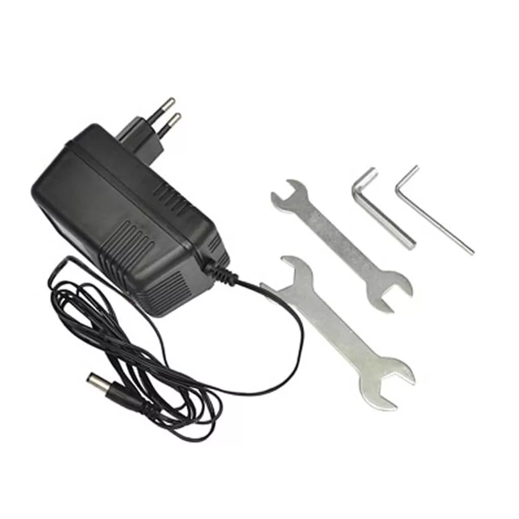 Végezetül a csomag 1 db egységet, 1 db töltőt, 1 db nyeregcsövet és nyerget, az összeszereléshez szükséges alkatrészeket, valamint tartalék biztosítékokat tartalmaz.