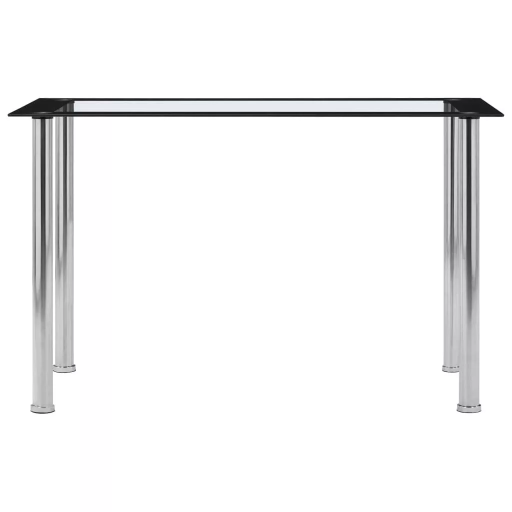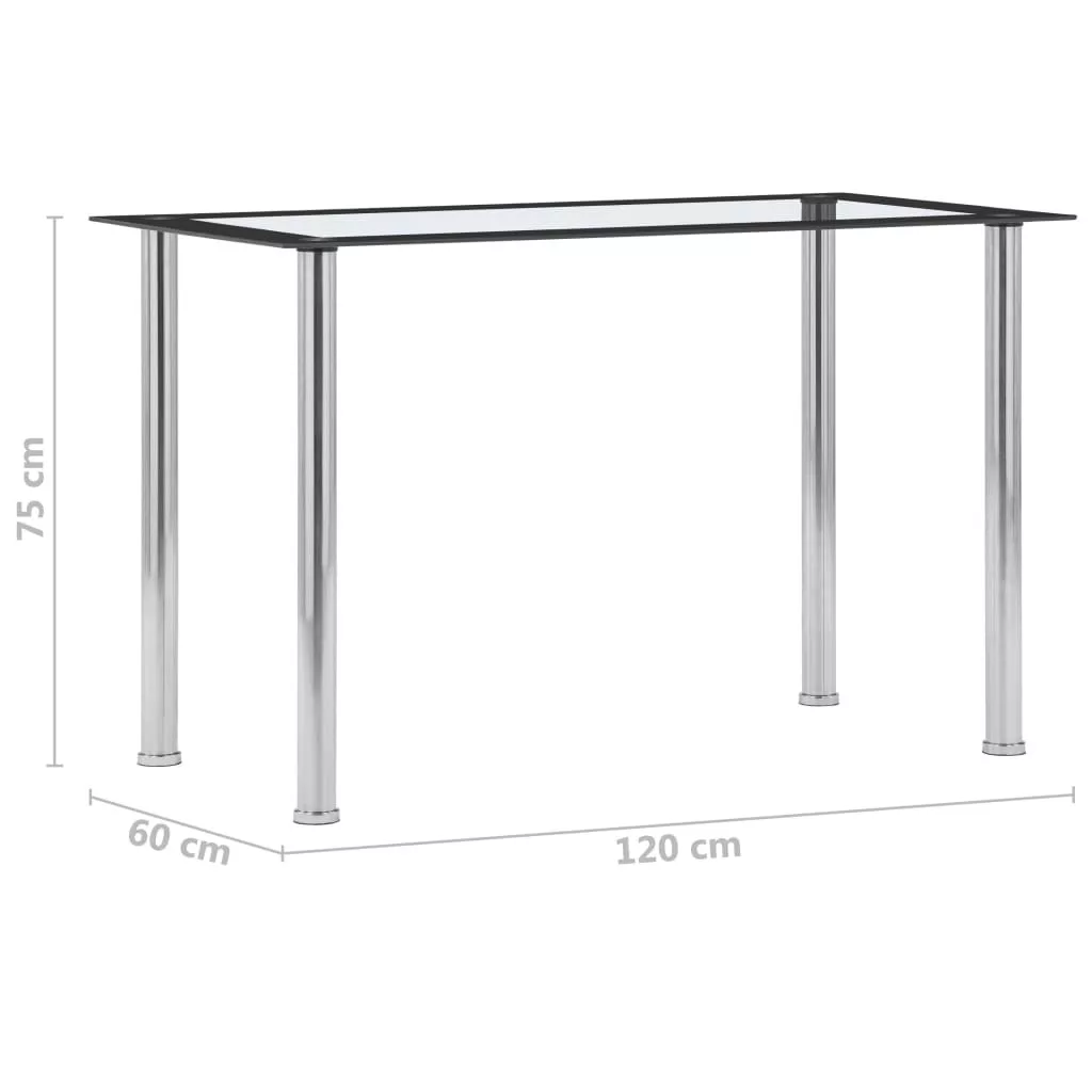 Az ebédlőasztal finom edzett üveg asztallappal rendelkezik, amely nedves ruhával könnyen tisztítható. A rozsdamentes acélváz hozzájárul tömör felépítéséhez, remek stabilitást és tartósságot biztosítva. Emellett az asztal könnyen összeszerelhető.