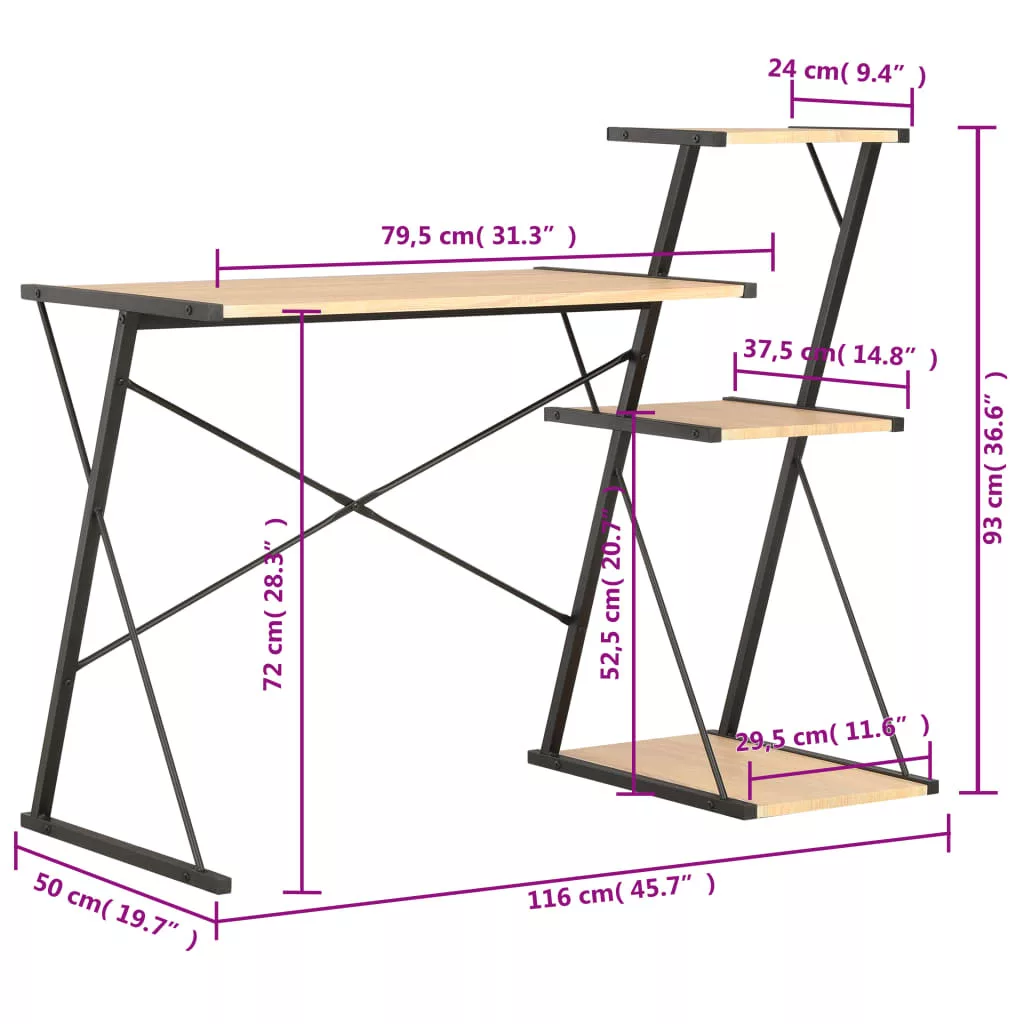 Ezt az egyedülálló és elegáns íróasztalt tágas és erős polcokkal látták el. A nagy asztalrész ideális a számítógép és tartozékai tárolására, így ez a bútordarab egy tökéletes munkaállomás papírmunkához, irodai munkához és tanuláshoz, míg a beépített polcok extra tárolóhelyet kínálnak könyvek, mappák, dokumentumok vagy képkeretek, dísztárgyak, cserepes növények, stb. számára.