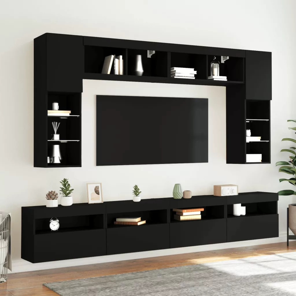 - Bőséges tárolóhely: A fali TV-egység bőséges helyet kínál apró tárgyak, például könyvek, DVD-k és folyóiratok rendezett és elérhető közelségben tartásához.
