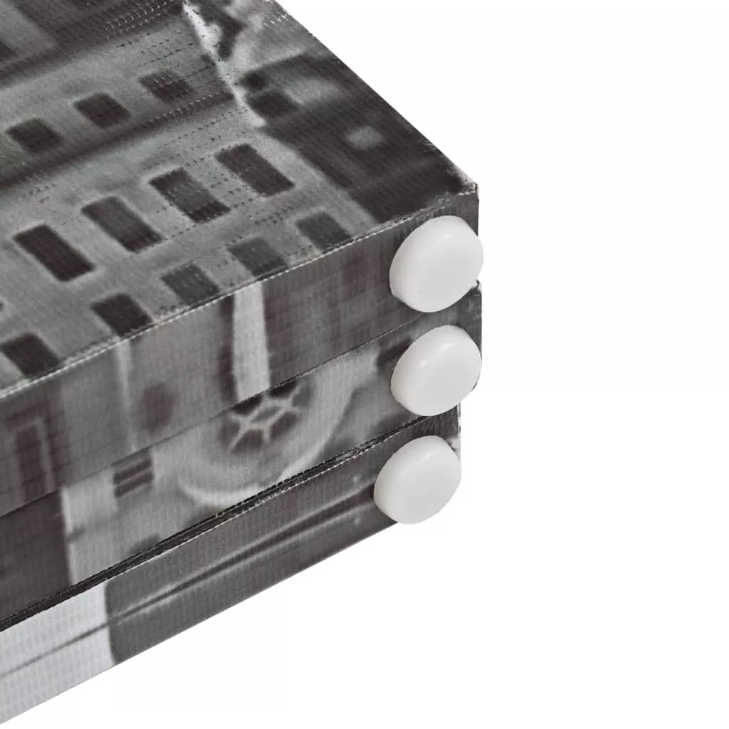 - New York-ot ábrázoló fekete-fehér fényképpel díszítve mindkét oldalán
