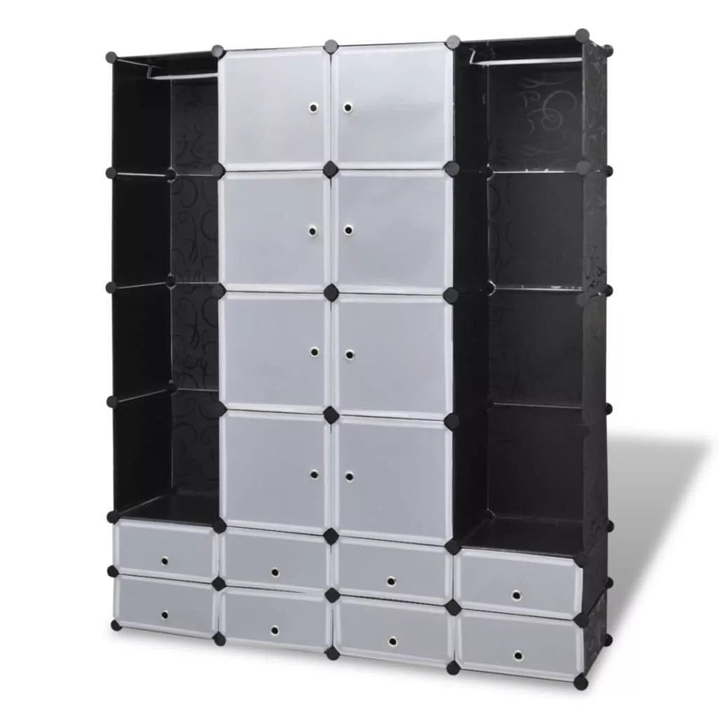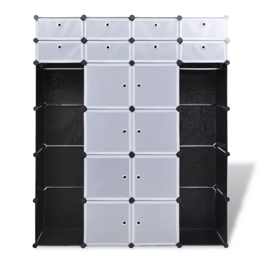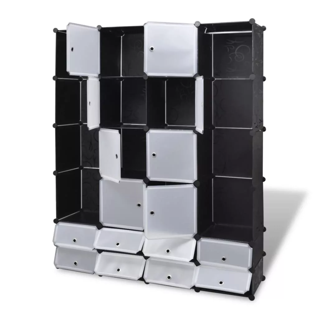 vidaXL fekete/fehér szekrény 18 tárolórekesszel 37 x 146 x 180,5 cm