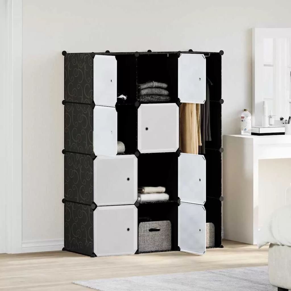 vidaXL fekete/fehér szekrény 9 tárolórekesszel 109x36,5x143 cm