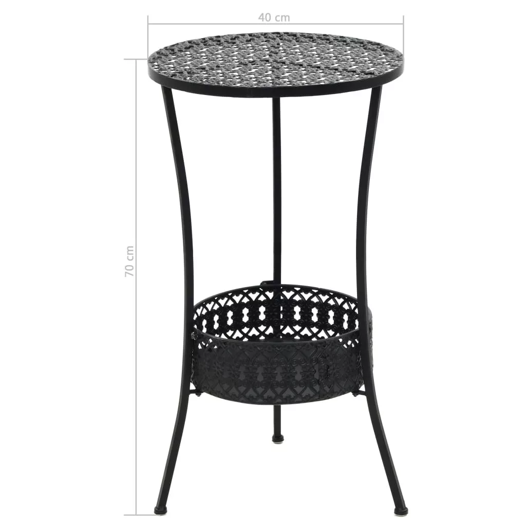 Ez a fém bisztróasztal bármely helyiségnek mutatós darabja lesz pompás díszítő motívumaival, amelyek antik megjelenést kölcsönöznek neki. Alsó kosara extra tárolóhelyet biztosít. A termék összeszerelése egyszerű.