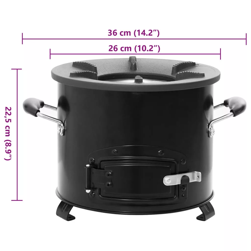 Ez a fatüzelésű kempingtűzhely főzőeszközként szolgál kültéri tevékenységekhez, hidegebb időben pedig extra meleget és kellemes hangulatot teremt.