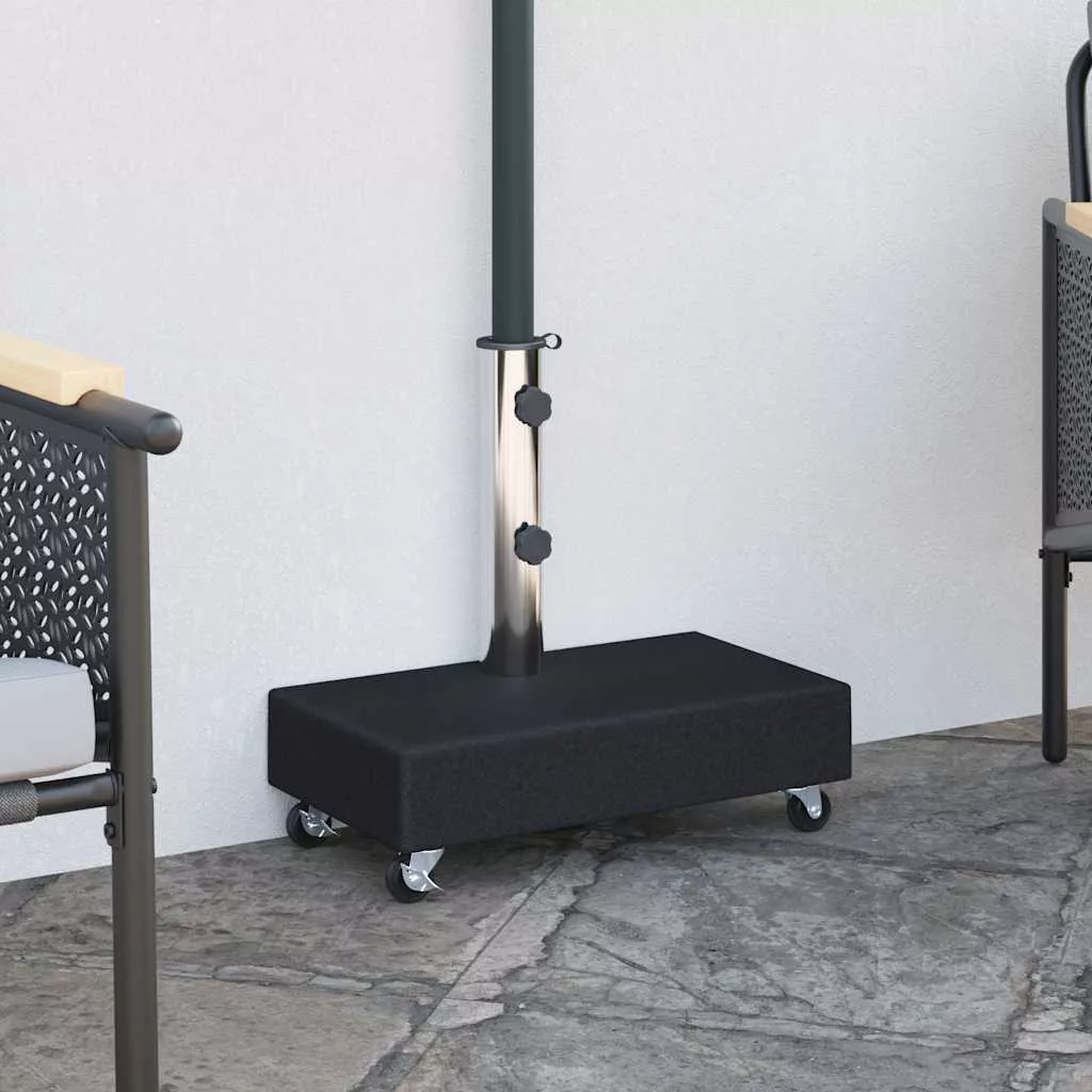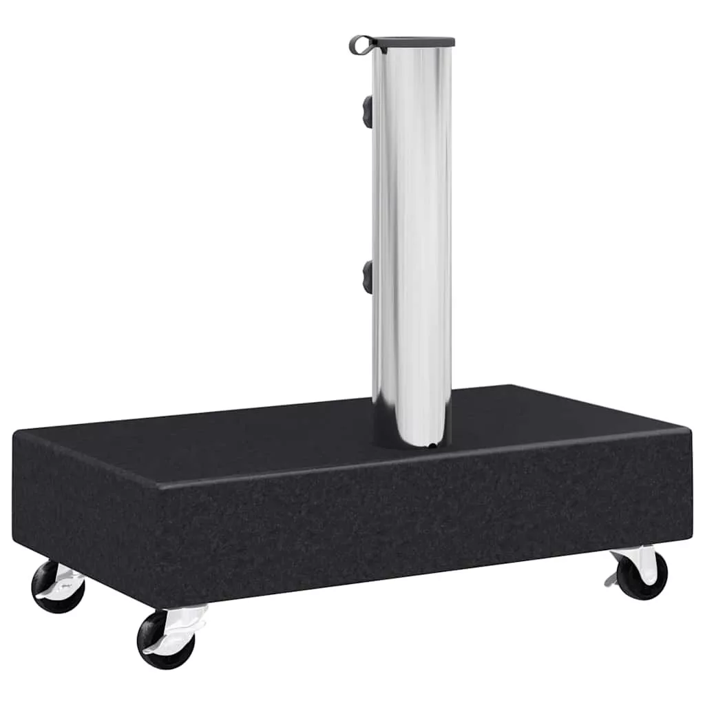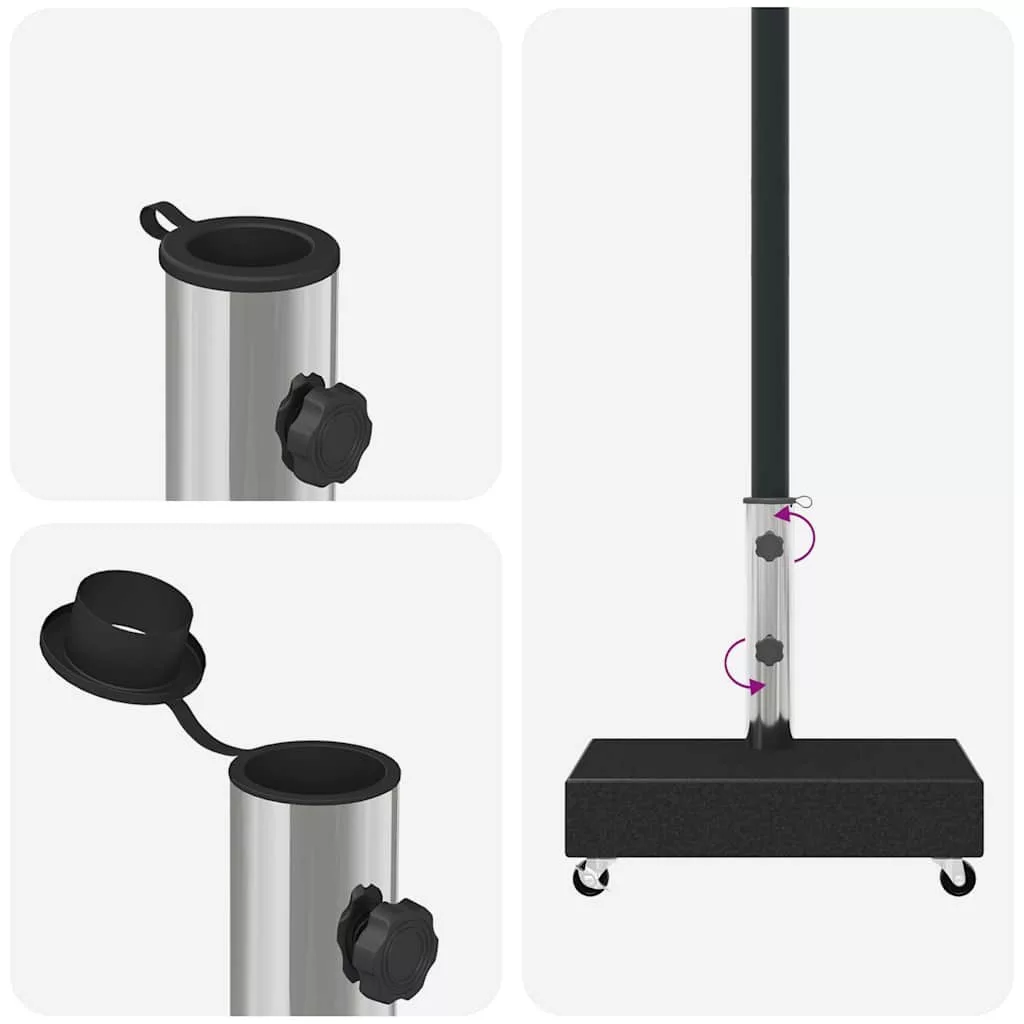A napernyőtartó tartós gránit konstrukcióval rendelkezik, amely tetemes súlyának köszönhetően nagyon stabil. A gránit és kifinomult megjelenést kölcsönöz a napernyőtalpnak, mely egy csipetnyi eleganciát csempész külterébe, és remekül kiegészíti fényűző kerti bútorgarnitúráját. A cső rozsdamentes acélból készült. A kerekek megkönnyítik a tartó mozgatását.