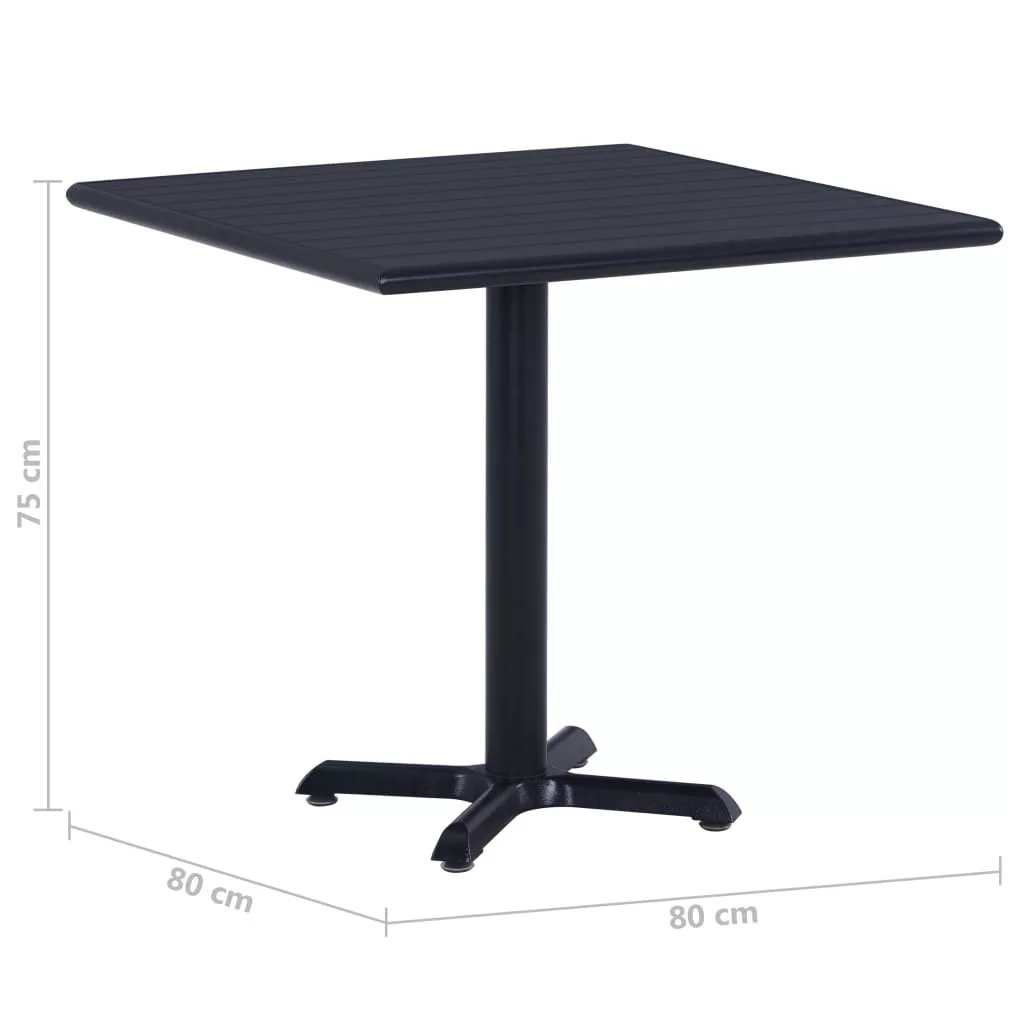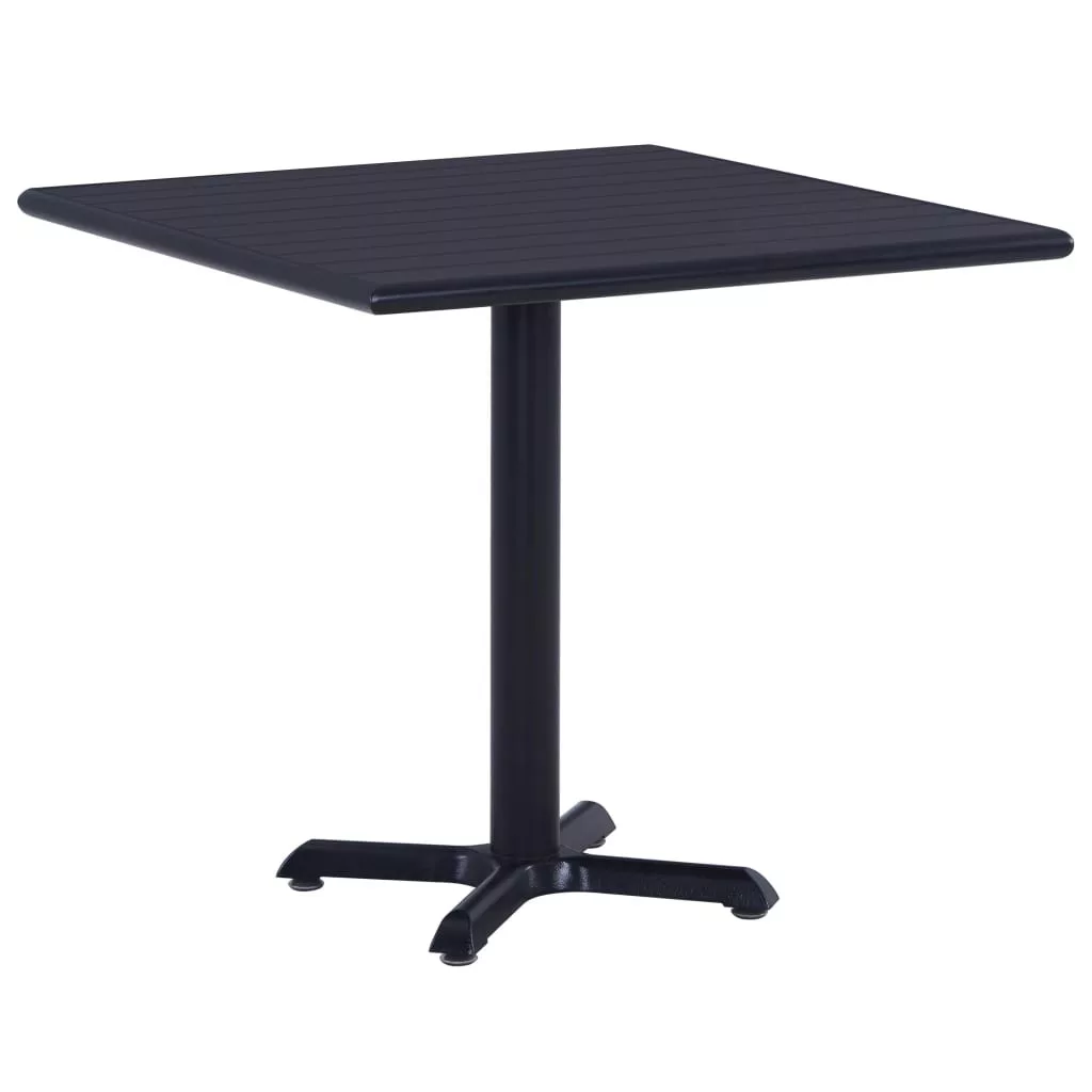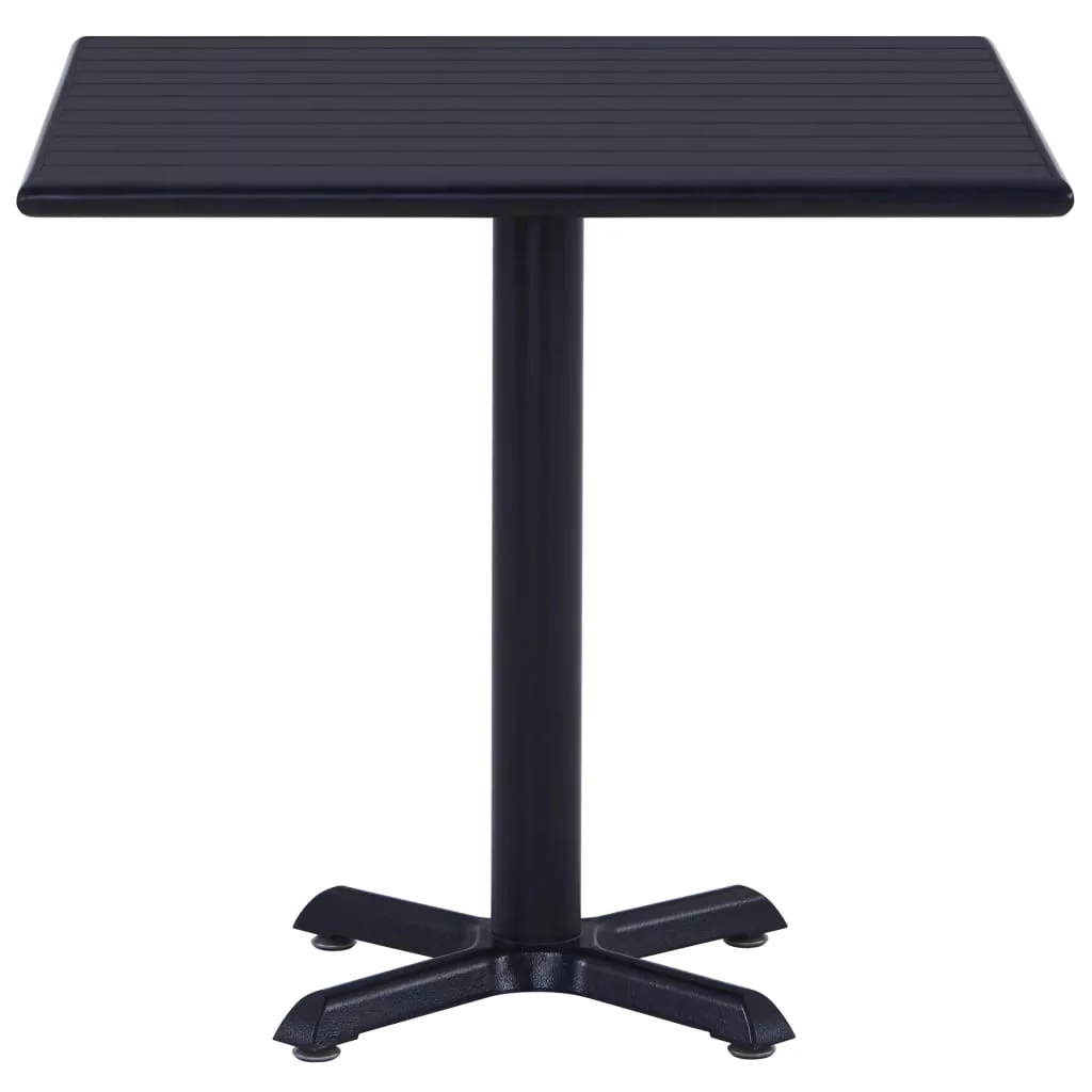 A kültéri asztal lécezett teteje tartós fa-műanyag kompozitból készült, mely időjárásálló és könnyen tisztítható. A porszórt fémváz kereszttalpával erőt és stabilitást biztosít.