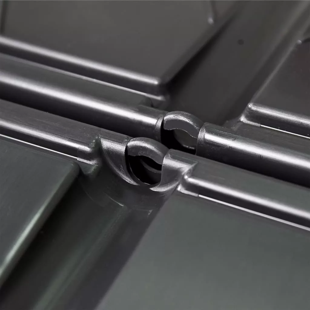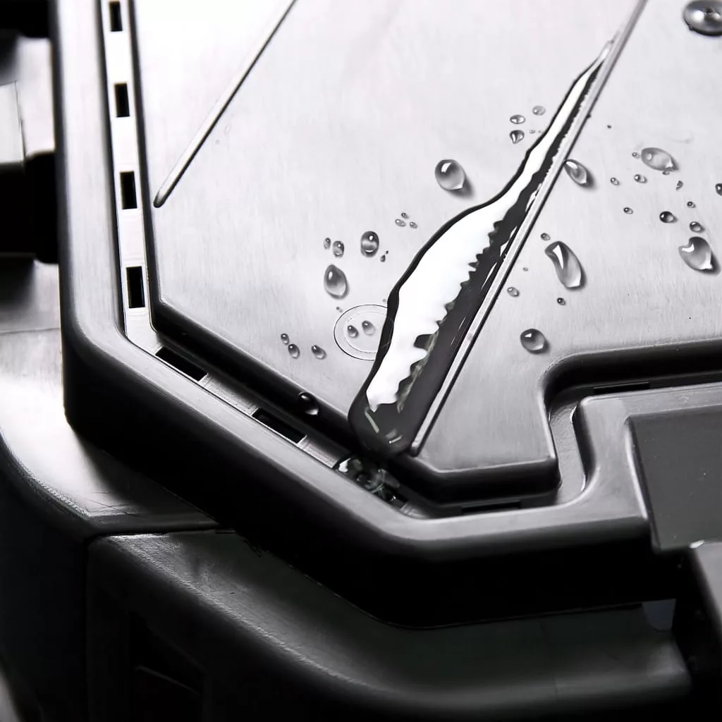 A nagy hőfejlődés a komposztáló egységben elősegíti a baktériumok gyorsabb lebontását, és jobb humuszt eredményez. Kompakt kialakítása révén a kerti komposztáló kevés helyet foglal el, mégis nagy mennyiség feldolgozására képes. A tetején lévő fedél megkönnyíti a felülről történő betöltést, a fül pedig a humusz egyszerű kivételét biztosítja. A csepegtető öntözőrendszer, a lakatfurat, a szilárd oldalsó reteszek, az erős zsanérok, a kényelmes fogantyú és a kényelmes tartókkal ellátott nagy csúszókapu mind hozzájárulnak a felhasználóbarát használathoz.