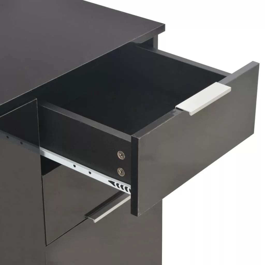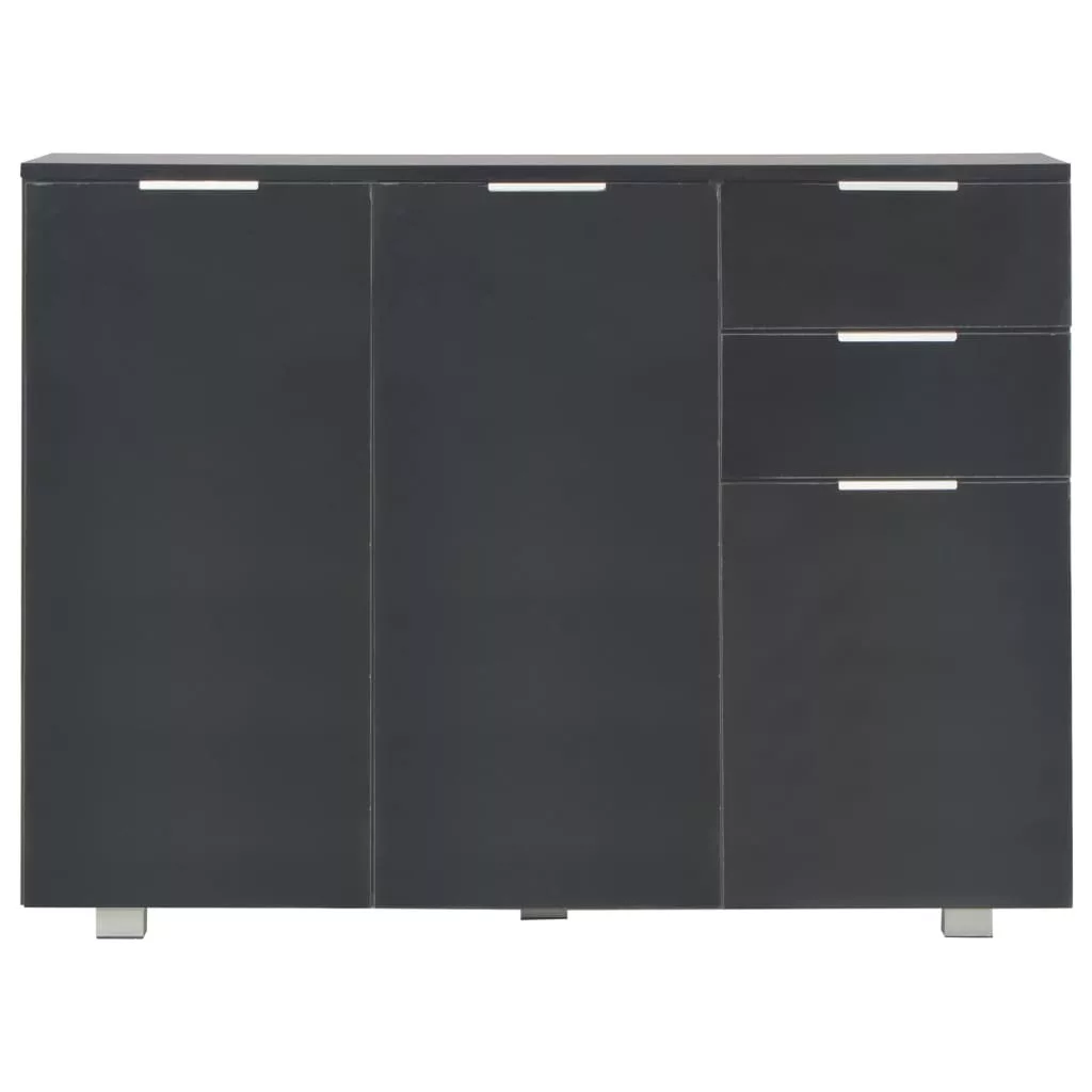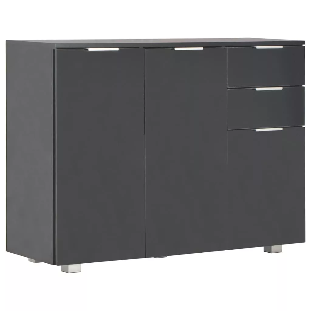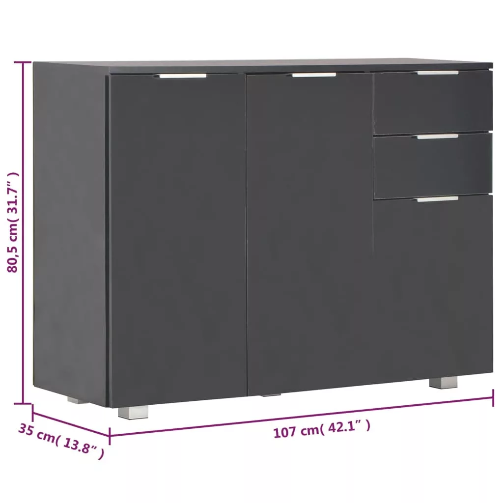 A magasfényű fehér felületű, szerelt fából készült fiókos szekrény kifinomult megjelenést kölcsönöz, valamint rendkívül stabil és tartós. Ezenkívül a 2 fiókkal és 3 ajtóval felszerelt tálalószekrény bőséges tárolóhelyet biztosít különféle tárgyak számára, így a szoba rendezett marad. Ez a magasfényű tárolószekrény könnyen tisztítható. Elegáns tálalószekrényünkkel új szintre emelheti lakberendezését!