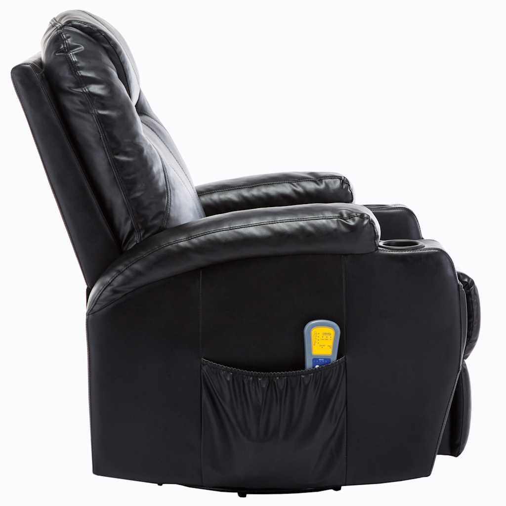 A prémium műbőrrel kárpitozott, vastagon párnázott ülőfelülettel és háttámlával ezt a forgatható fekvőtámlát úgy tervezték, hogy maximális kényelmet nyújtson. A TV-fotel forgatható rendszerrel rendelkezik, amely 360°-os kilátást biztosít. A masszírozó hintafotel 8 masszázsponttal rendelkezik, amelyek megnyugtatják az egész testet. A háttámla és a lábtámasz az Ön igényei szerint különböző szögekbe állítható. A hozzátartozó távirányító a masszázsfotel oldalzsebébe csúsztatható.