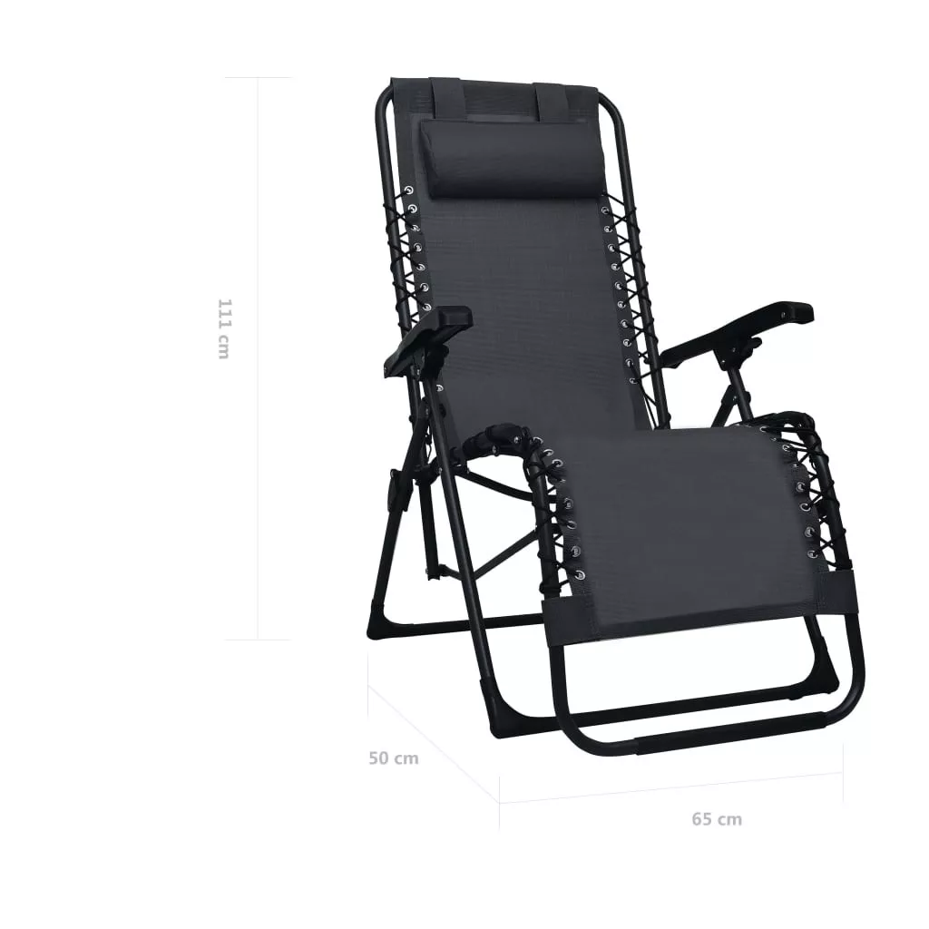 A kerti szék masszív acélvázzal és könnyen tisztítható, időjárásálló textilén ülőfelülettel és háttámlával rendelkezik, így hosszú élettartamú. A párnázott fejtámla puha és kényelmes. A szék könnyű szerkezetének köszönhetően könnyen mozgatható, és a helytakarékosság jegyében összecsukható.