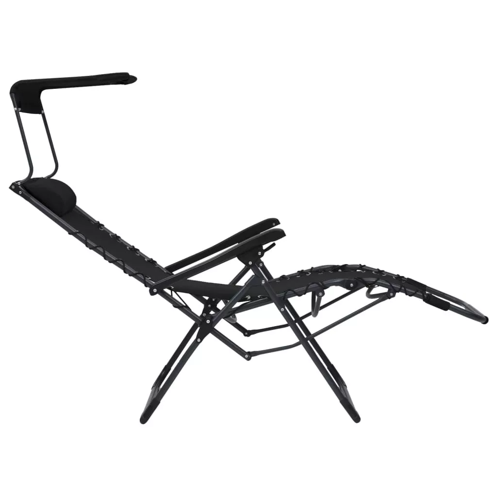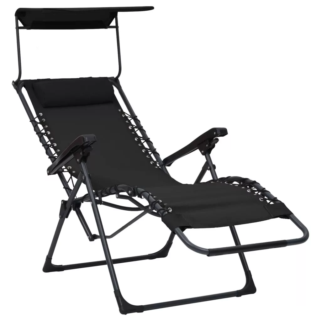A kerti szék masszív acélvázzal és könnyen tisztítható, időjárásálló textilén ülőfelülettel és háttámlával rendelkezik, így hosszú élettartamú. A párnázott fejtámla puha és kényelmes. A napellenzős tervezésnek köszönhetően ez a nyugágy hűvös árnyékot biztosít a forró napsütésben. Továbbá a szék könnyű szerkezete miatt könnyen mozgatható, és a helytakarékosság érdekében összecsukható amikor nincs használatban.