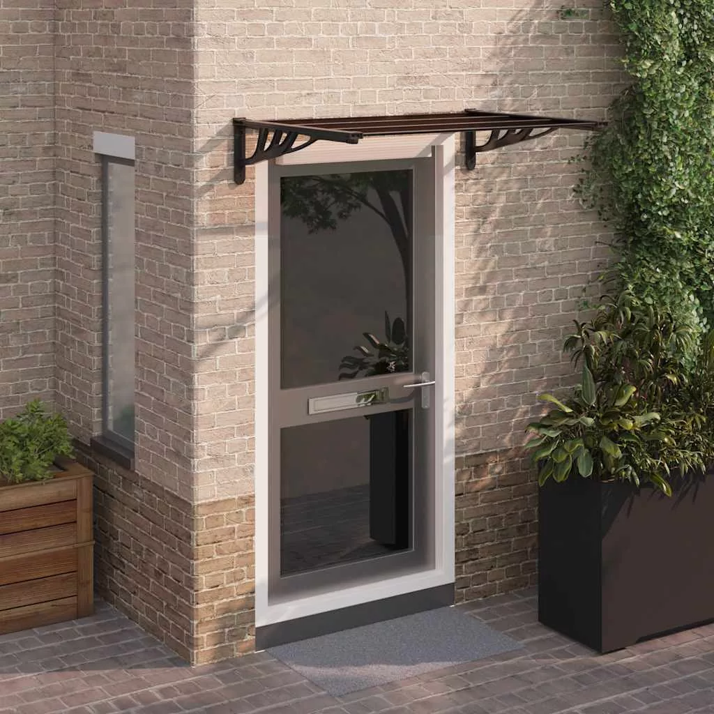 - Könnyű felszerelés: A szállítás a gyors és egyszerű felszerelés érdekében az ajtó feletti előtetőhöz szükséges valamennyi szerelvényt tartalmazza.