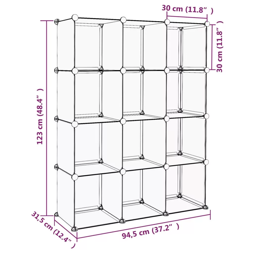 - Bőséges tárolóhely: Ez az elemes műanyagszekrény 12 kockát tartalmaz. A tárolóhely megkönnyíti holmija rendezett tárolását.