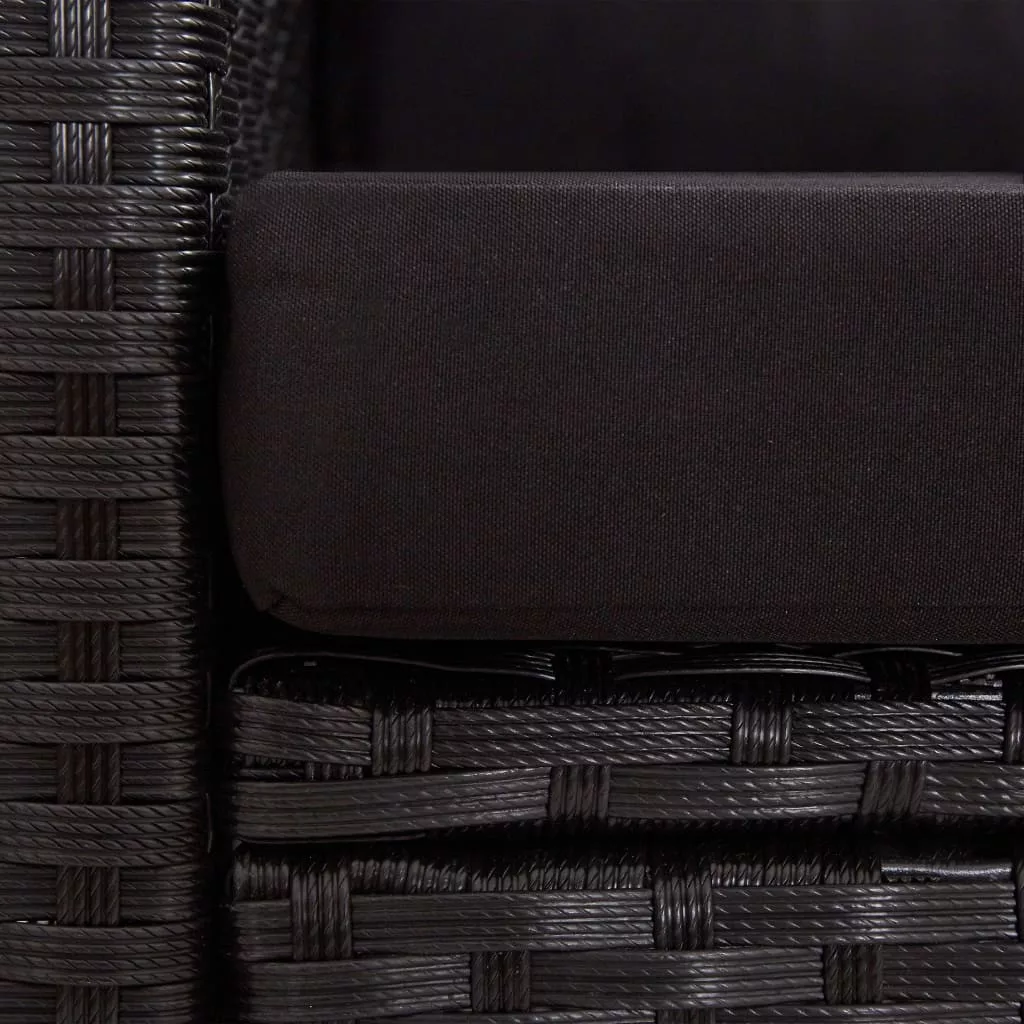 - Anyaga: polyrattan, szövet (100% poliészter), porszórt acél