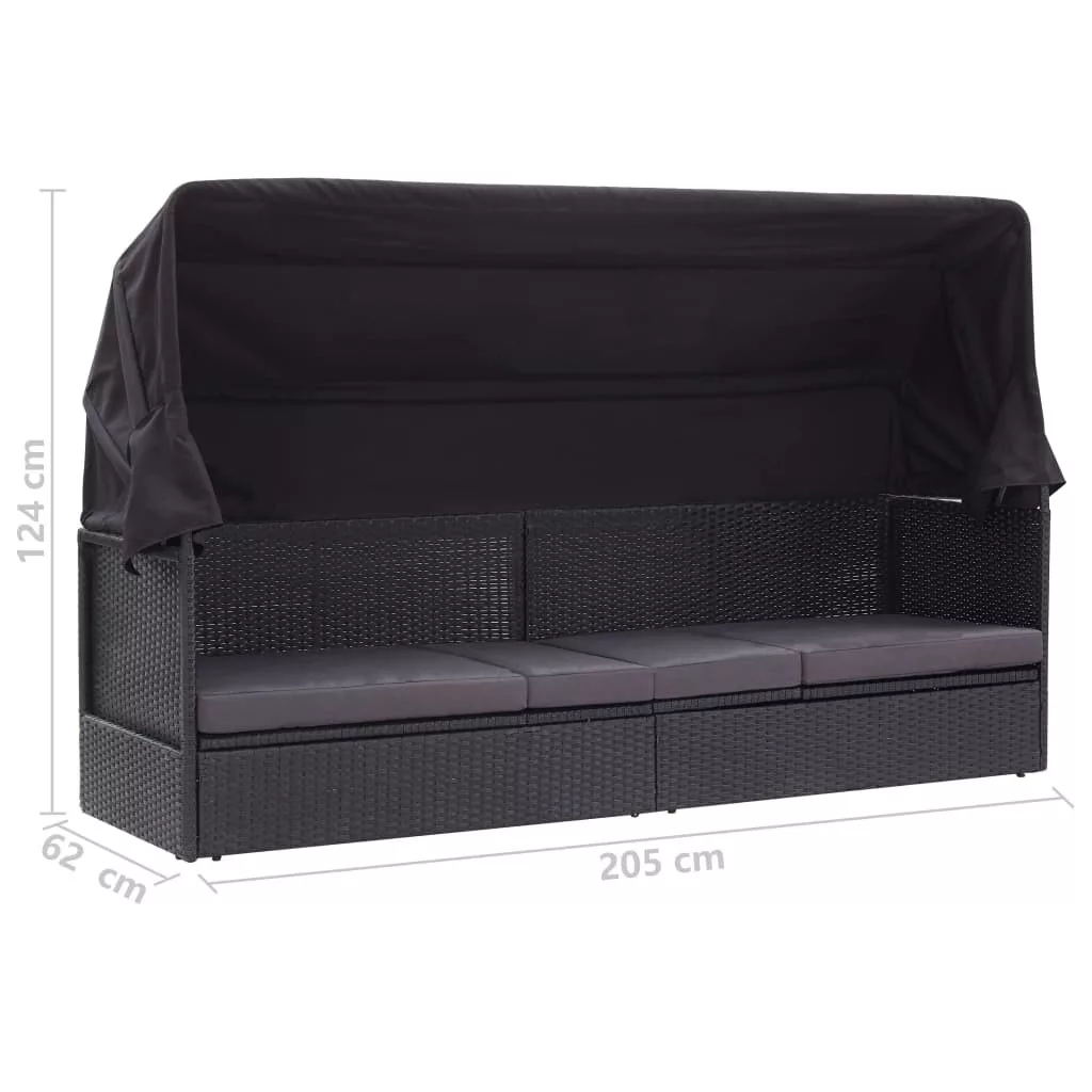 A napozóágy tartós polietilén rattanból készült, amely időjárás-, folt- és UV-álló, és könnyen tisztítható. A kivehető, vastag és puha ülőpárna kényelmes, a napellenző pedig megvédi Önt a nap égető sugaraitól. Az ágy tartósságát erős, mégis könnyű acélváz biztosítja.