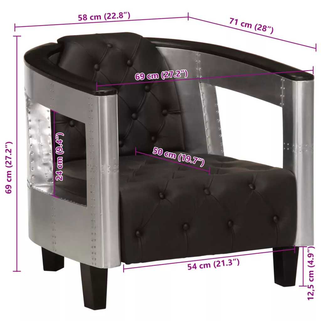 Ez a valódi bőrből készült, repülős stílusú fotel egy csipet luxussal ruházza fel otthonát, és ezenfelül óriási kényelmet kínál Önnek. Ráadásul az alumínium karfáknak köszönhetően rendkívül stabil. Ezeknek, valamint a vastagon párnázott, valódi bőrből készült kárpitnak hála a fotel nagyon kényelmes.
