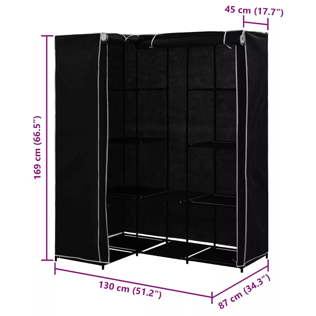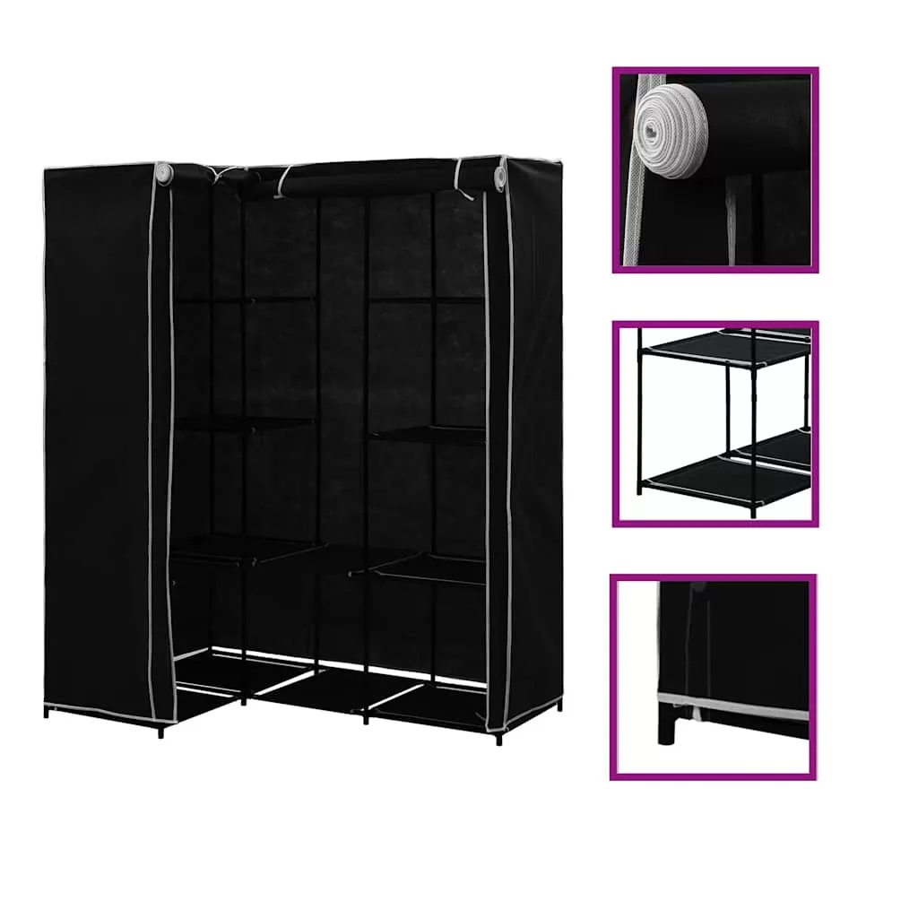 A strapabíró vasváz meglepően erőssé teszi ezt a ruhaállványt. Egy normál szövetszekrénnyel összehasonlítva a sarokszövetszekrény szerkezete még stabilabb. A helytakarékos ruhásszekrény optimalizálja a sarok kihasználtságát, így nagy tárolófelületet és akasztóhelyeket kínál táskái, cipői és egyéb kisebb tárgyai rendezetten és elérhető távolságban tartására. A cipzáras szövetborítás megóvja ruháit a kosztól és a portól.
