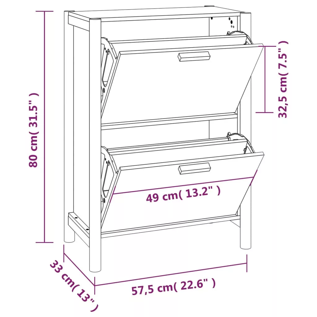 vidaXL fekete szerelt fa cipőszekrény 57,5 x 33 x 80 cm