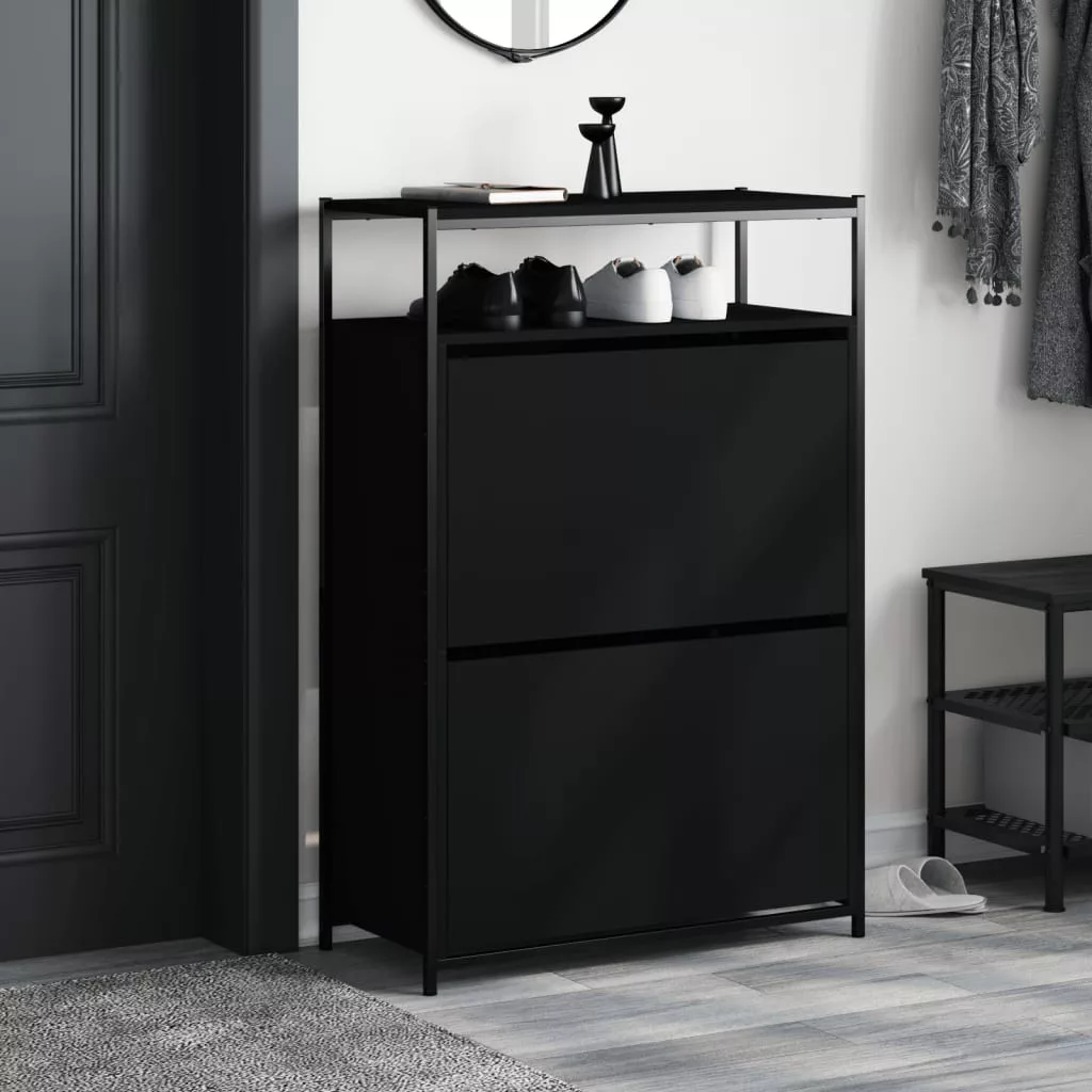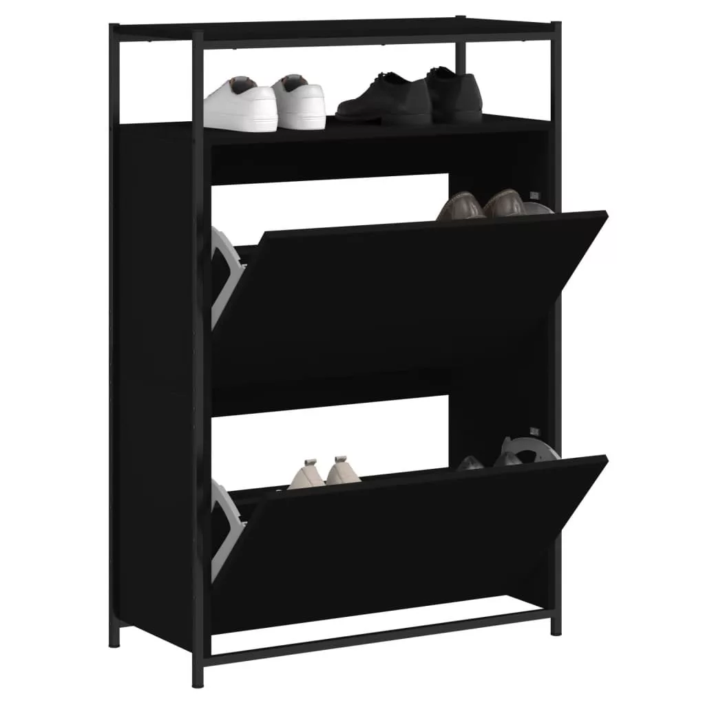 vidaXL fekete szerelt fa cipőszekrény 75x34x112 cm
