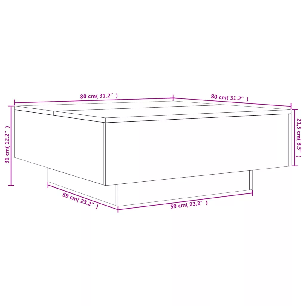 - Mérete: 80 x 80 x 31 cm (Szé x Mé x Ma)