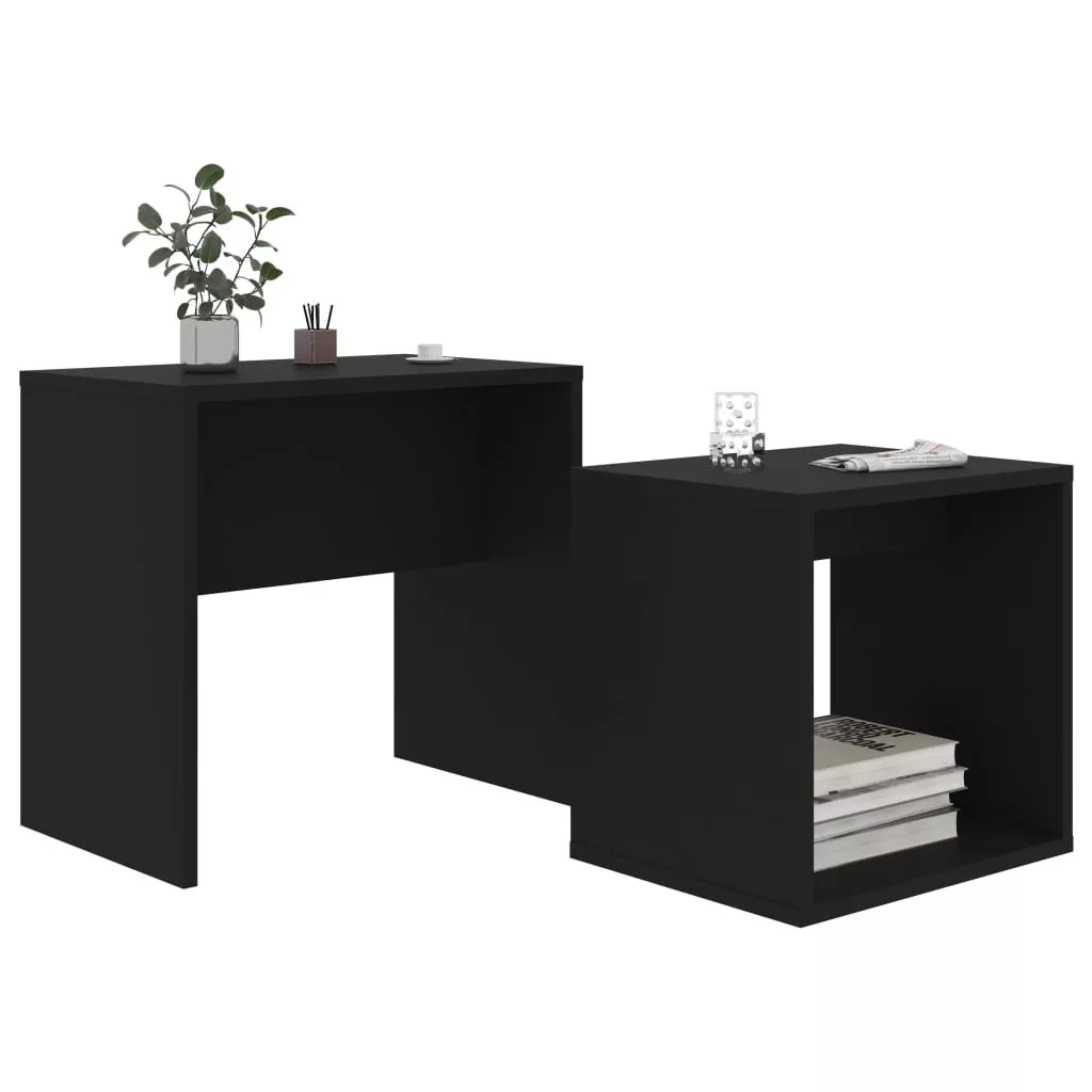 Ez a 2 részes dohányzóasztal-garnitúra nagyszerű választás kis méretű lakásokba, vagy bárhova, ahol korlátozott hely áll rendelkezésre. Kortárs stílusa miatt nappalija, hálószobája vagy irodája sikkes kiegészítőjévé varázsolja az egymásba illeszthető asztalszettet.