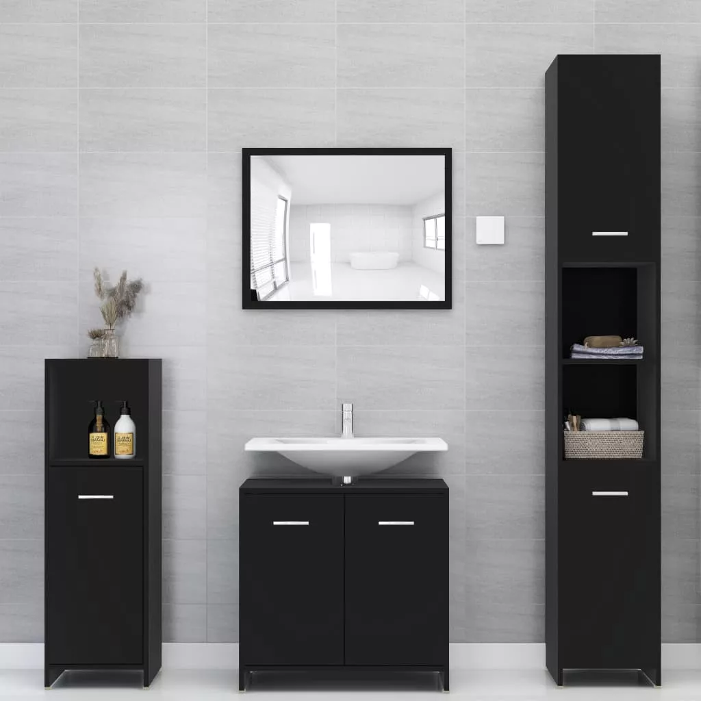 vidaXL fekete szerelt fa fürdőszobaszekrény 30 x 30 x 95 cm