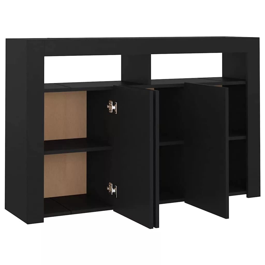 - RGB LED-világítás: A tálalószekrény élénk RGB LED-világítással lett felszerelve. A sokféle testre szabható menü segítségével egyszerűen megváltoztathatja a világítás színét, sőt, automatikus váltakozást is beállíthat. Ezek a LED-lámpák nemcsak a tálalószekrény modern megjelenését, de divatosságát is növelik.