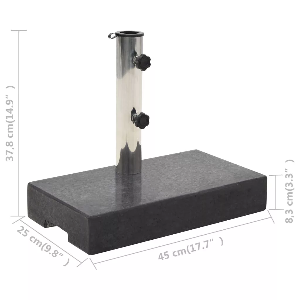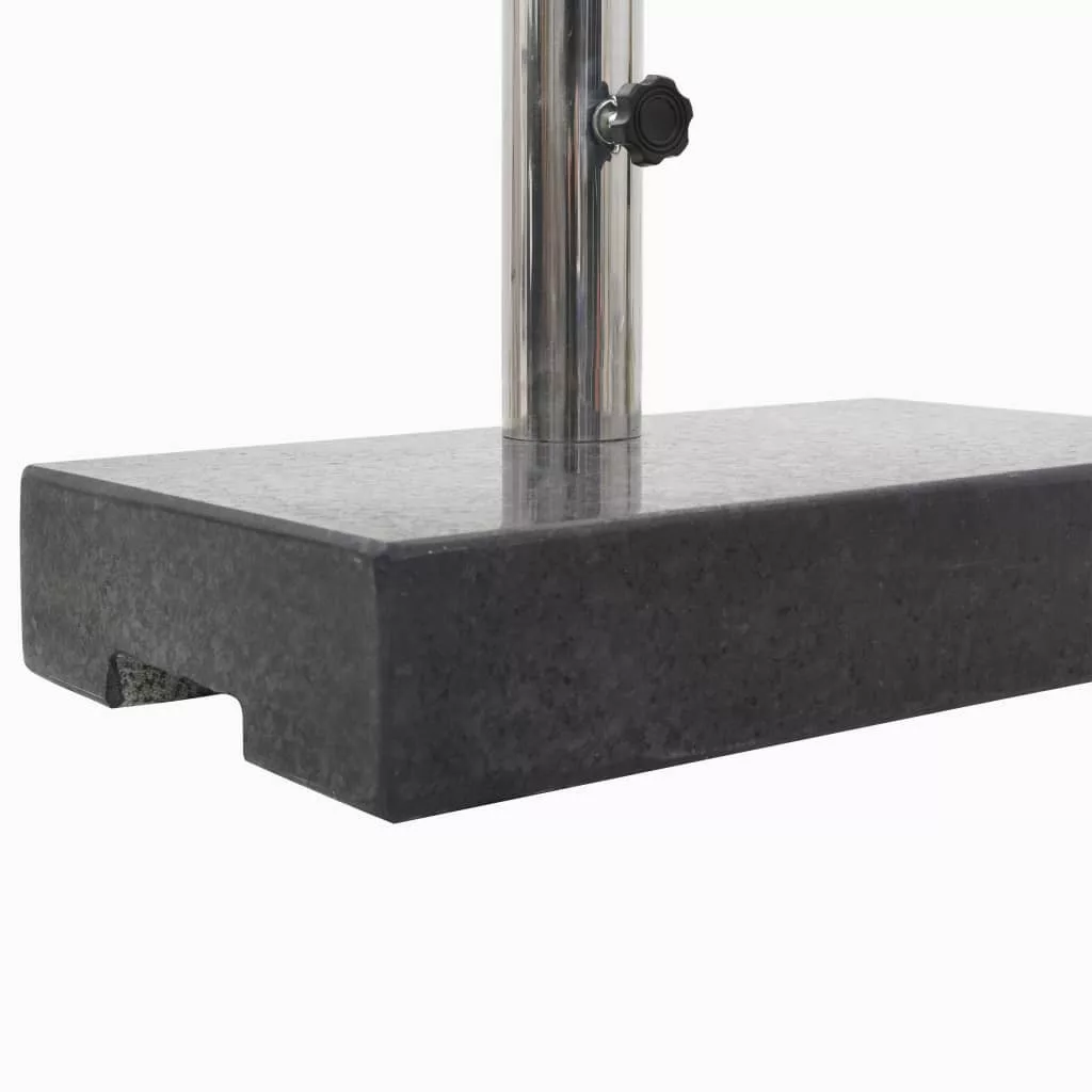 Erős gránitból készült és 25 kg súlyú, ez a napernyő nehezék rendkívül stabil, és még szeles időben is stabilan tartja a napernyőt. A napernyőtartó 2 reteszelő csavarral rendelkezik, hogy az ernyőrúd a helyén maradjon. A csomag egy adaptert tartalmaz, így a napernyőtalp tartó 38/48 mm átmérőjű napernyőrudakhoz is alkalmas.