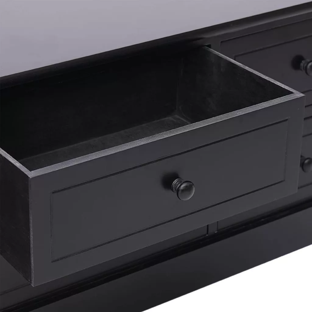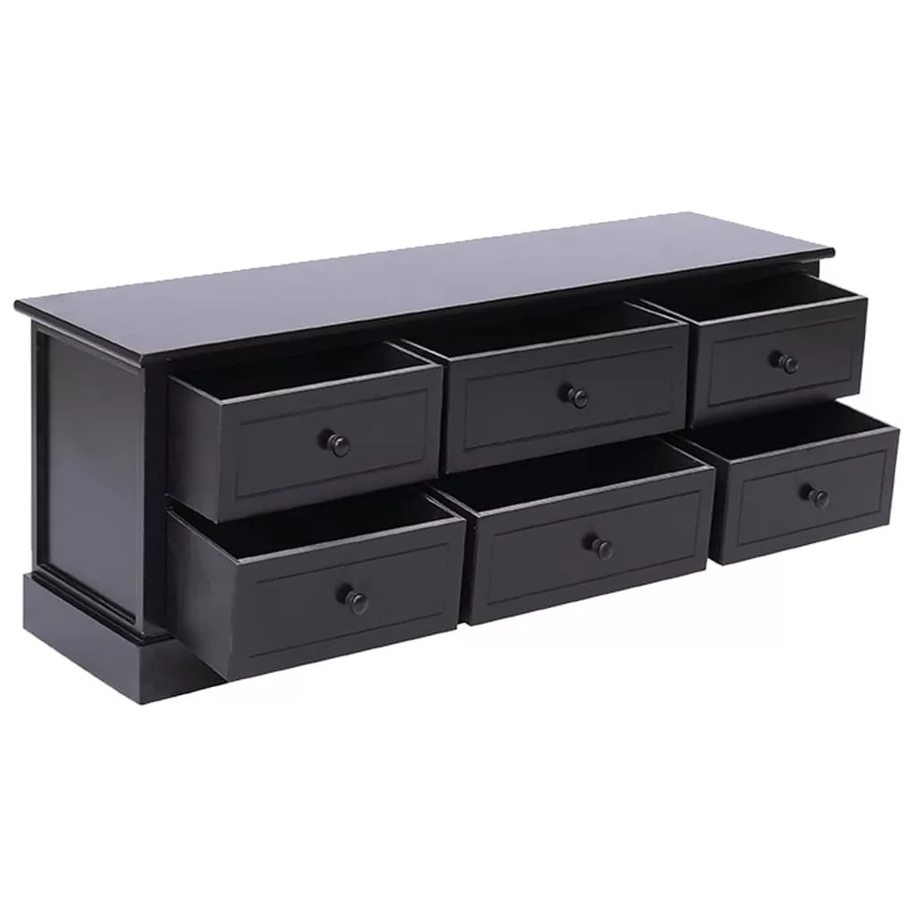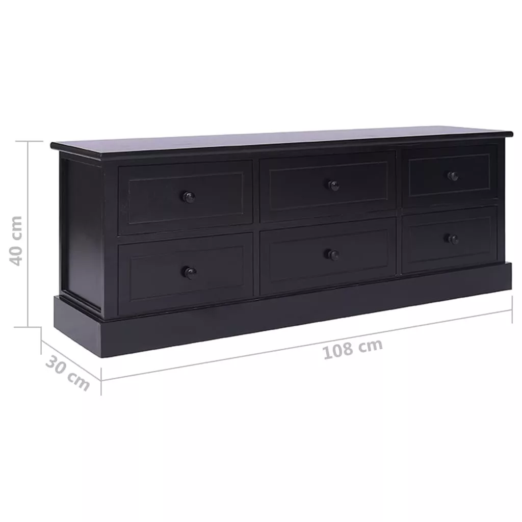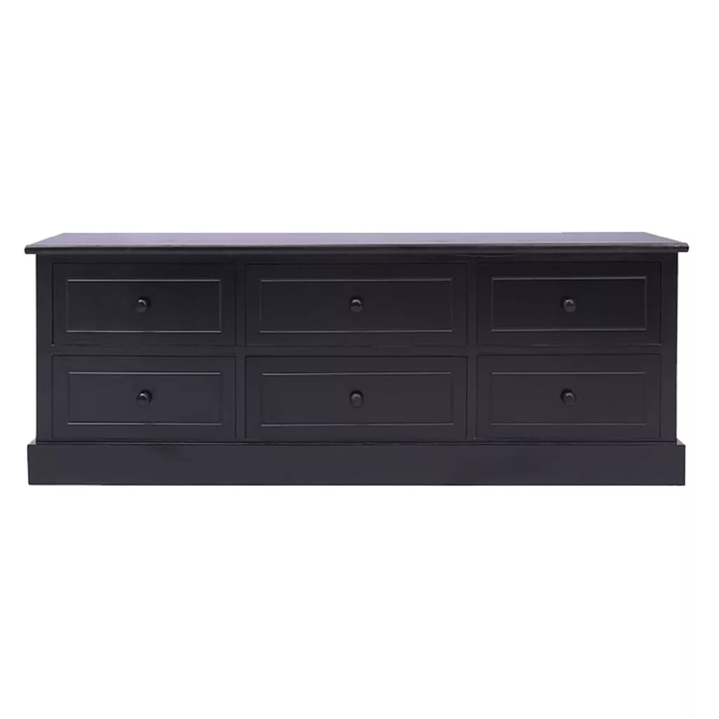 Ez a minőségi császár- és nyárfából készült TV-szekrény tartós és könnyen tisztítható. Masszív teteje ideális arra, hogy elhelyezze rajta tévéjét és hangrendszerét, de tarthat rajta dísztárgyakat is, például vázákat vagy cserepes növényeket. Emellett 6 darab könnyen kihúzható fiókkal lett ellátva, melyek bőséges helyet kínálnak személyes tárgyai számára. Ezzel a szekrénnyel biztosan rendet teremthet a nappaliban, a hálószobában vagy más helyiségekben.