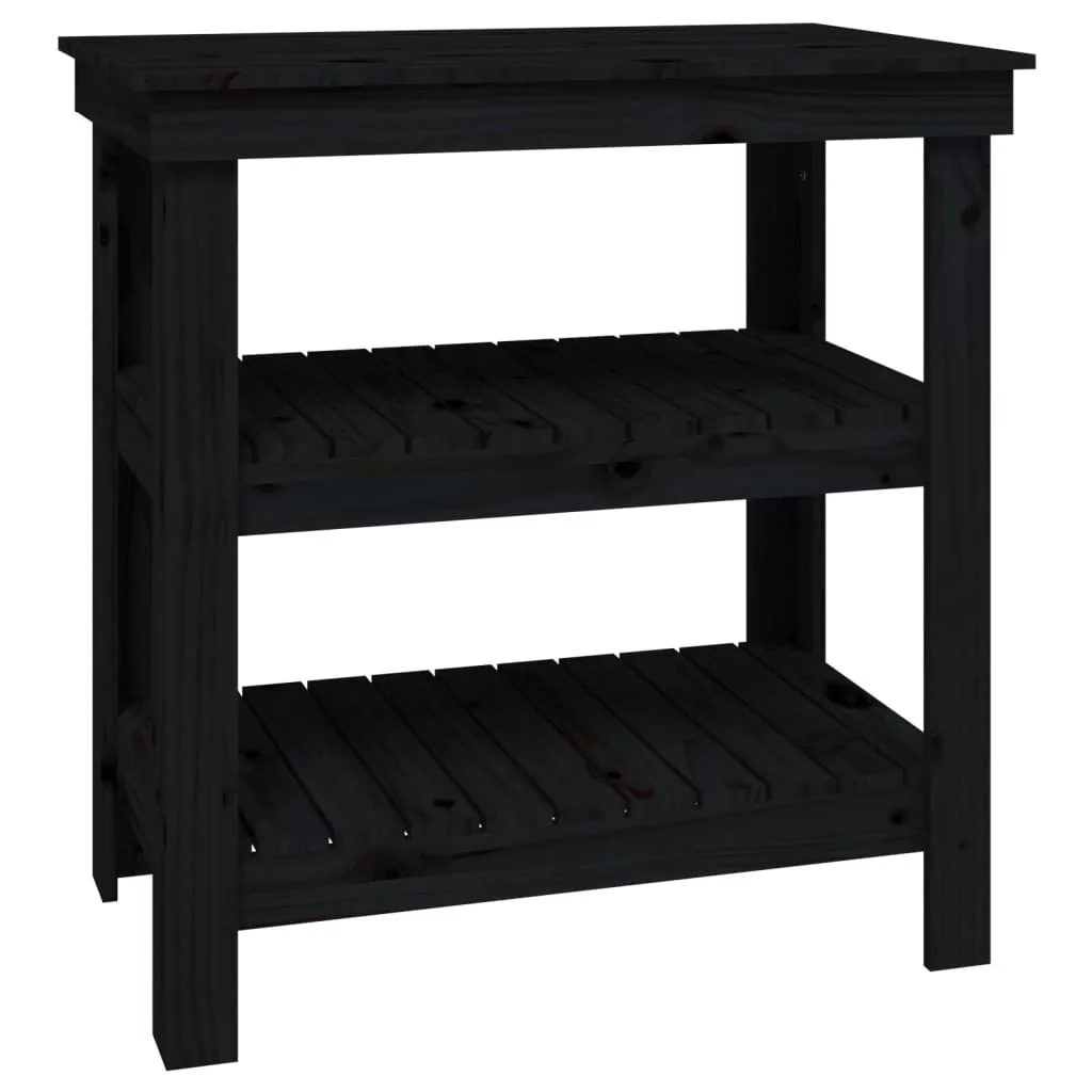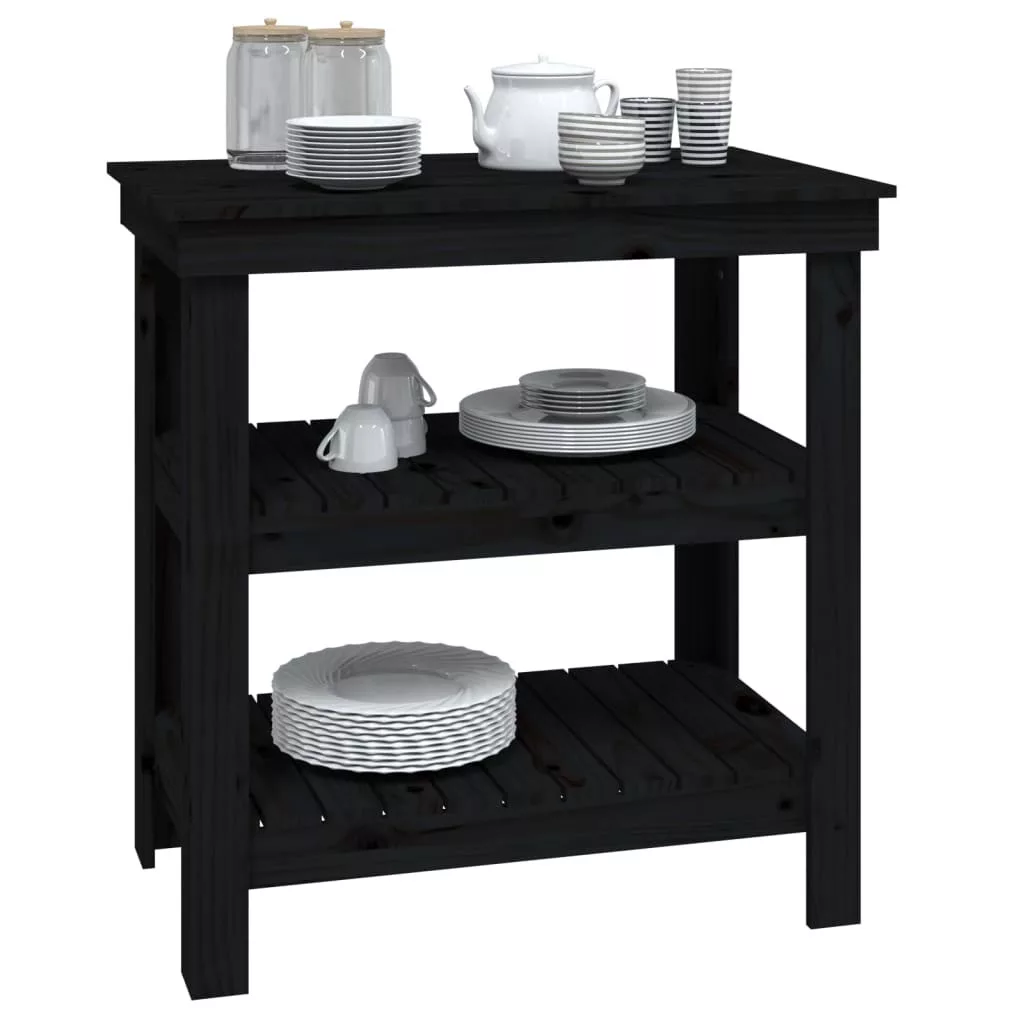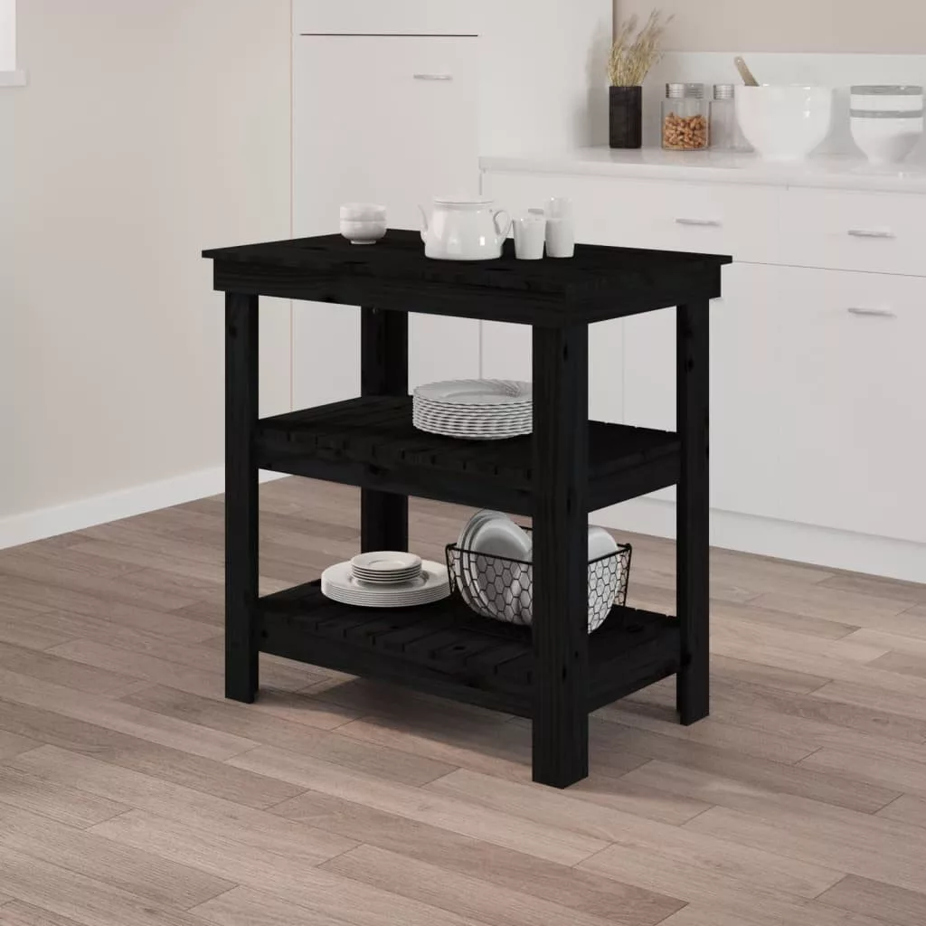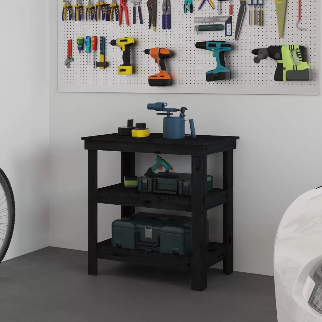 vidaXL fekete tömör fenyőfa munkapad 78,5x50x80 cm