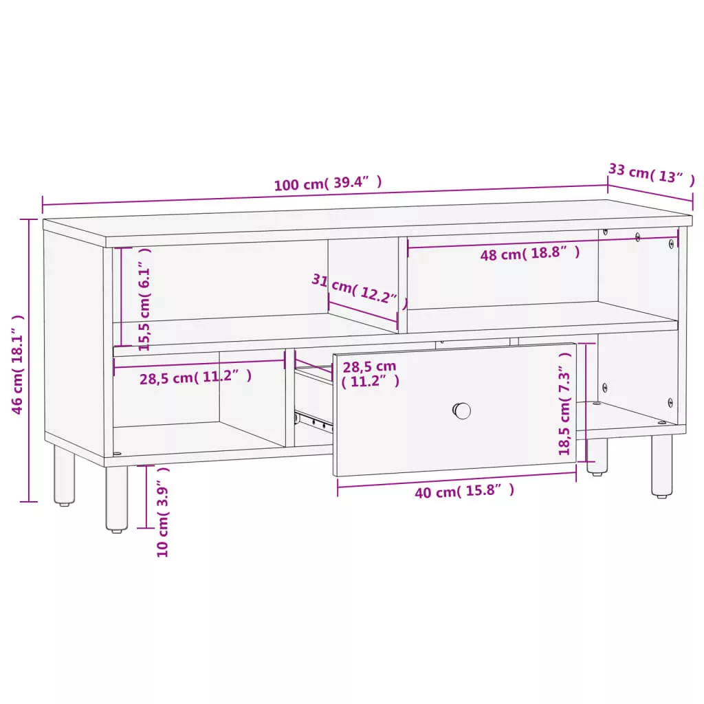 vidaXL fekete tömör mangófa TV-szekrény 100 x 33 x 46 cm