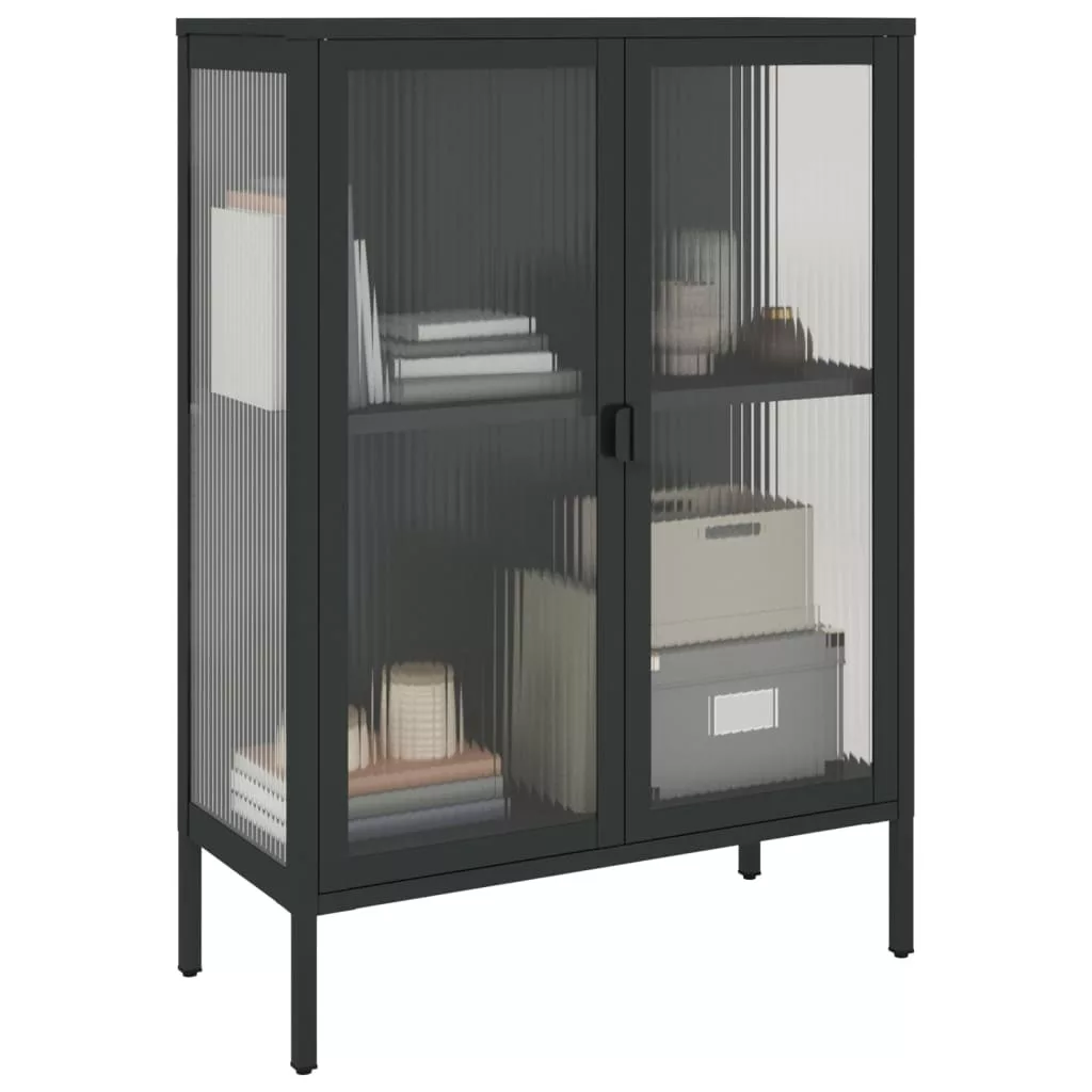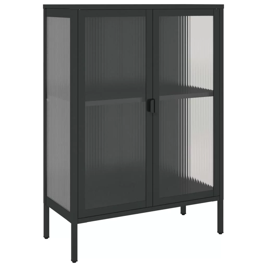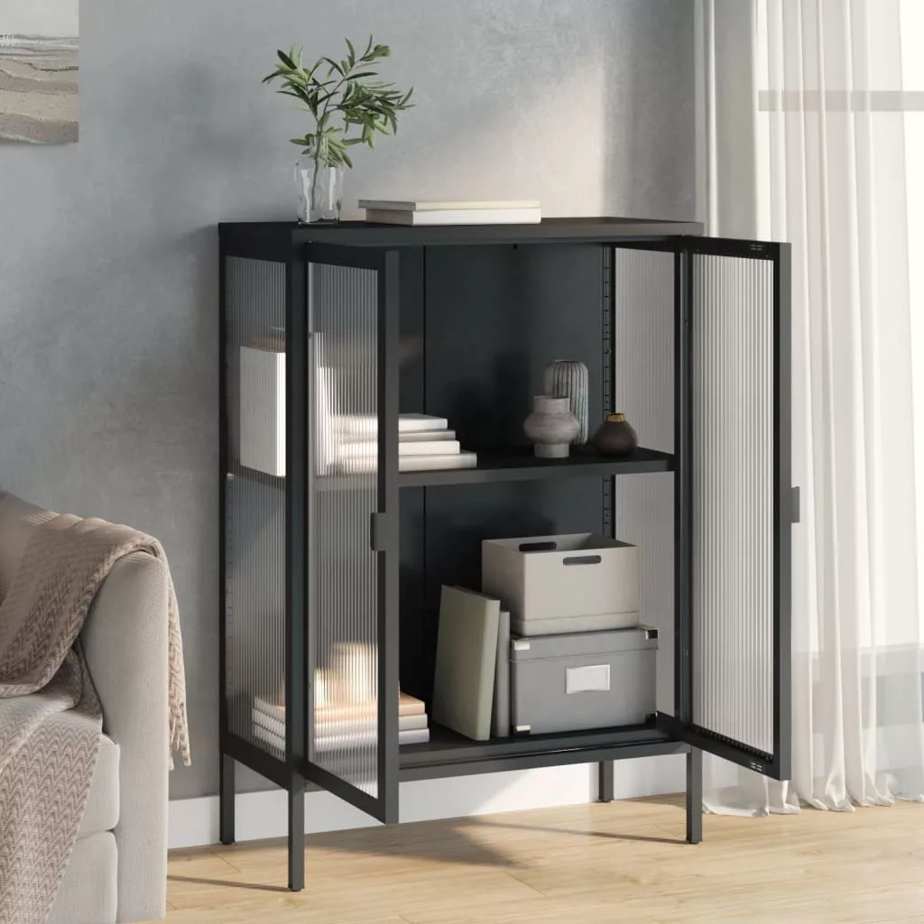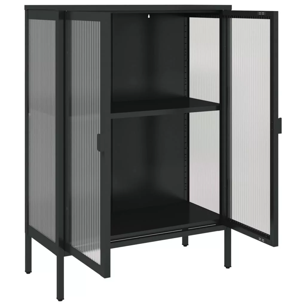 vidaXL fekete üveg és acél tálalószekrény 75 x 35 x 105 cm