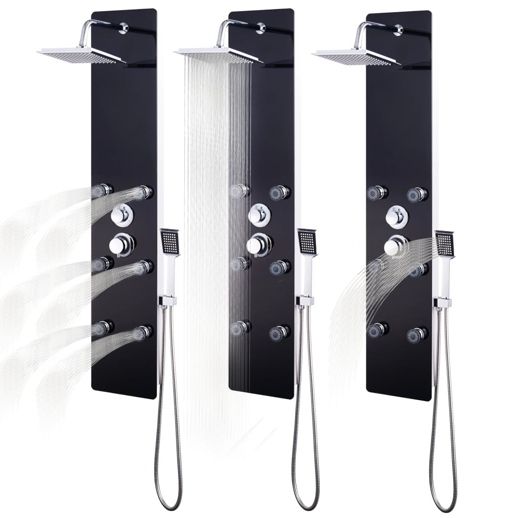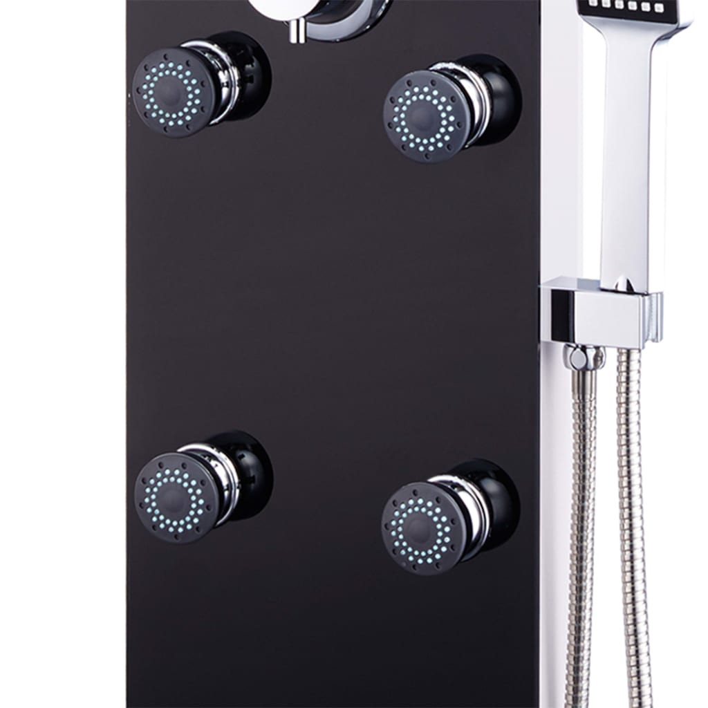A zuhanypanel rozsdamentes acélból és edzett üvegből készült. Az edzett üveg olyan kontrollált hő- vagy vegyi kezelés eredménye, ami a normál üveghez képest tartósabbá és biztonságosabbá teszi. Három zuhanyozási módot kínál, amelyek egyszerűen kiválaszthatóak: esőztető zuhany, hidromasszázs és kézi zuhanyozás. A szilikon fúvókák ellenállnak a vízkő lerakódásának. Tapasztalja meg az igazán ellazító zuhanyozás élményét, és lelje örömét e gyönyörű megjelenésű, modern stílusú zuhanypanel-rendszerben. Összeszerelése egyszerű.