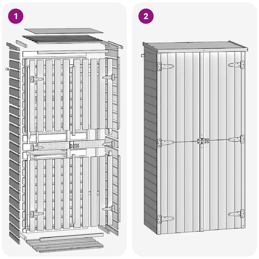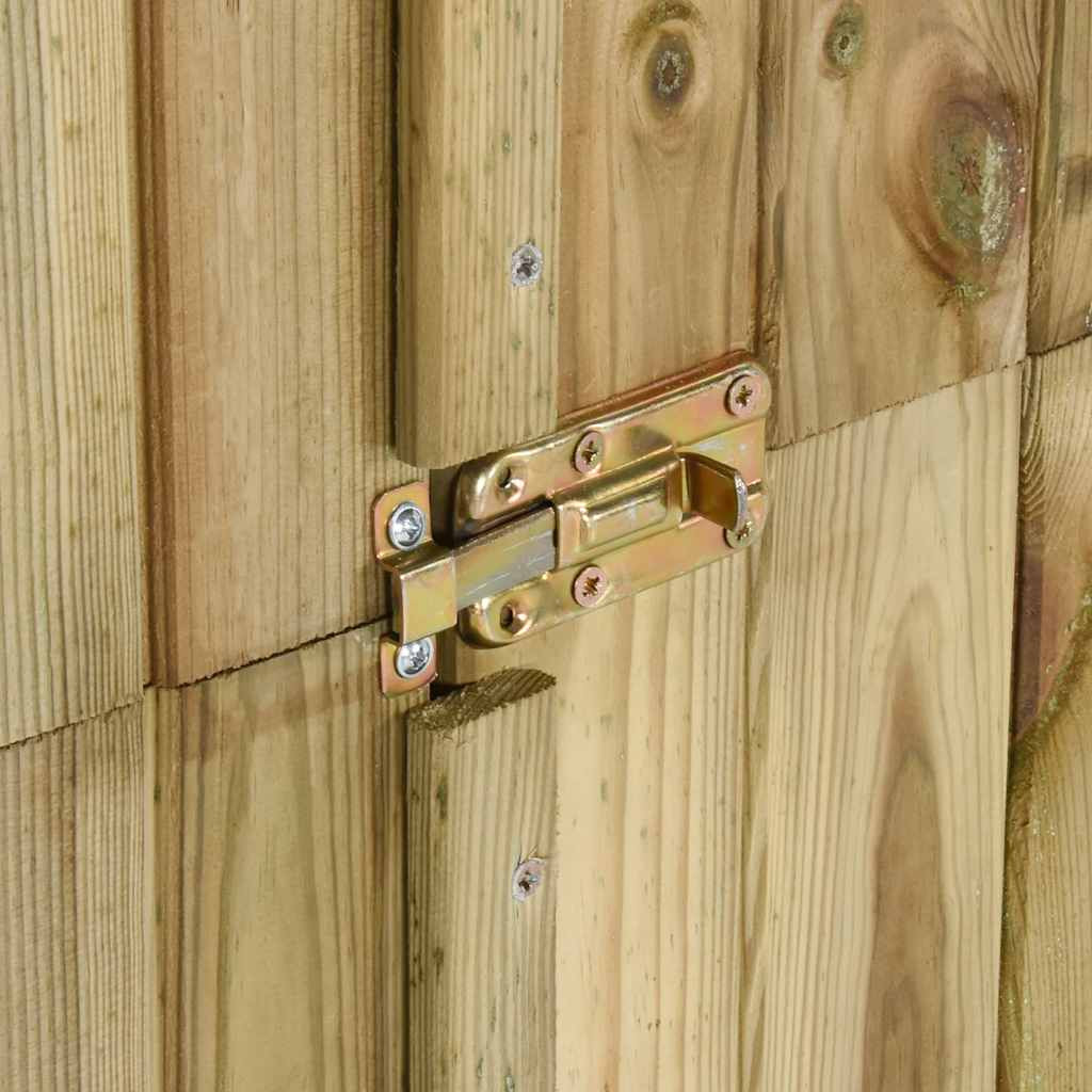 Ez a kültéri tárolószekrény fenyőfából készült, ami környezetbarát. Az impregnált fenyő strapabíró, időjárásálló és nem korhad. Ezenkívül a tető vízhatlan kátránypapír filccel van bélelve.
