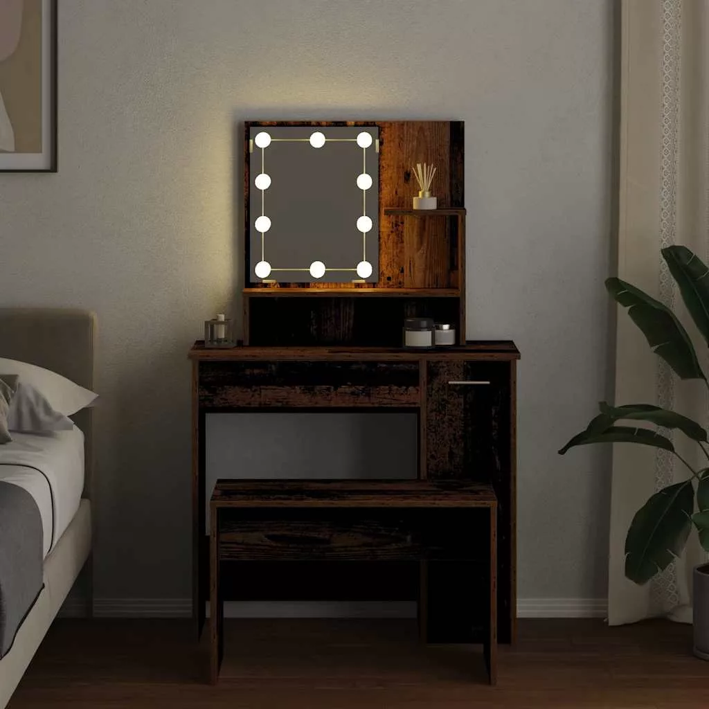 Ez a divatos, LED-es öltözőasztalkészlet kiváló kiegészítője hálószobája dekorációjának. A kozmetikumokat is elérhető közelségben tartja!