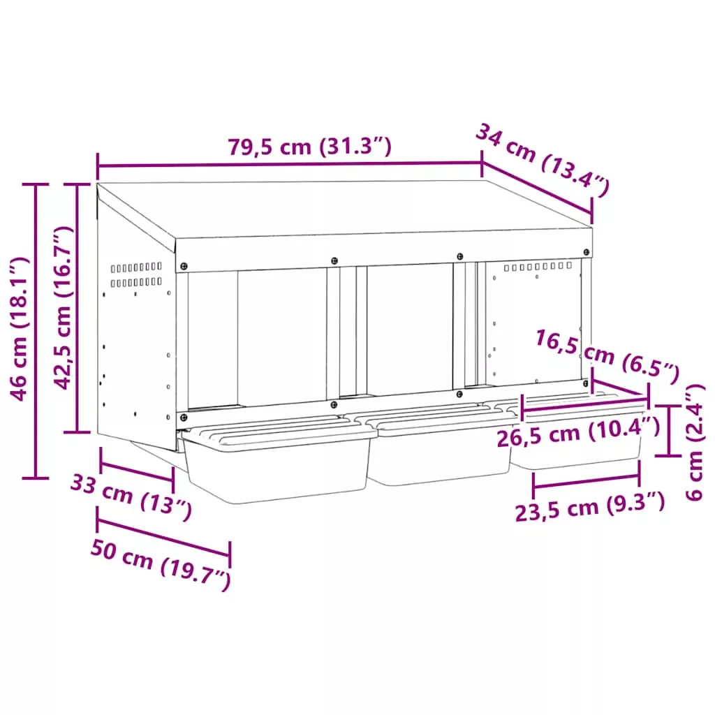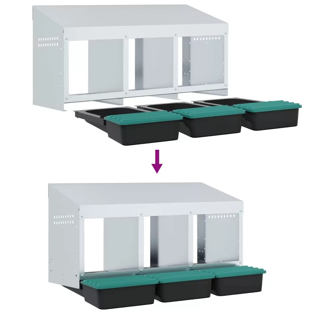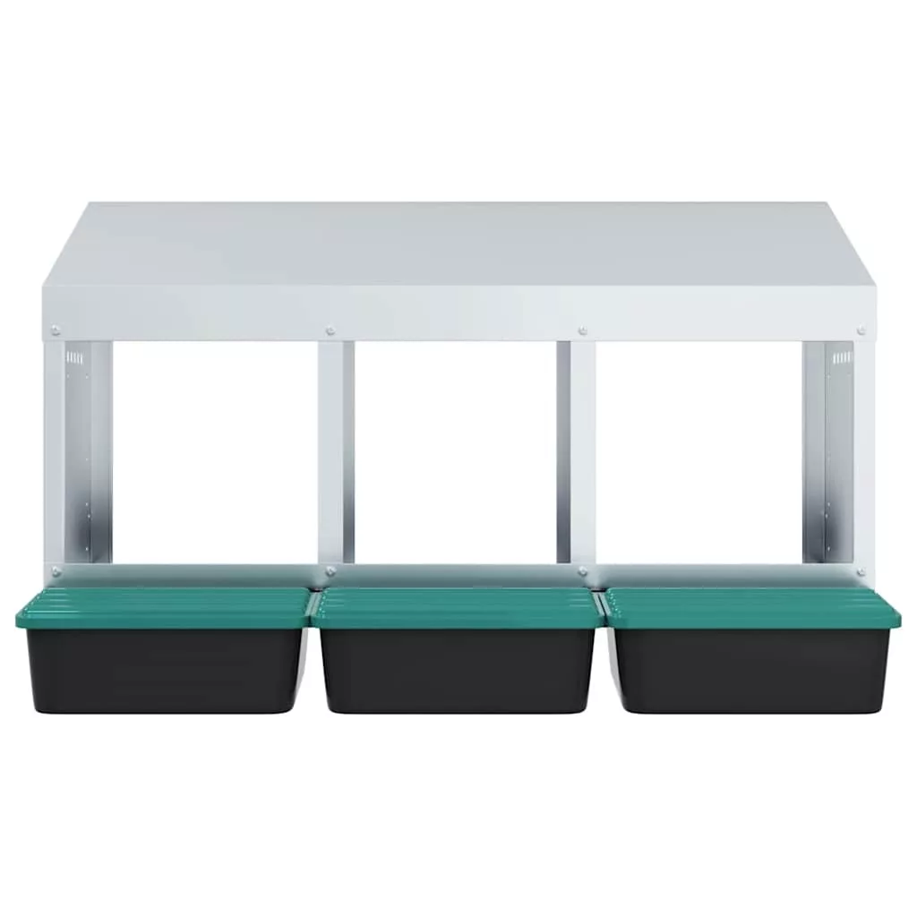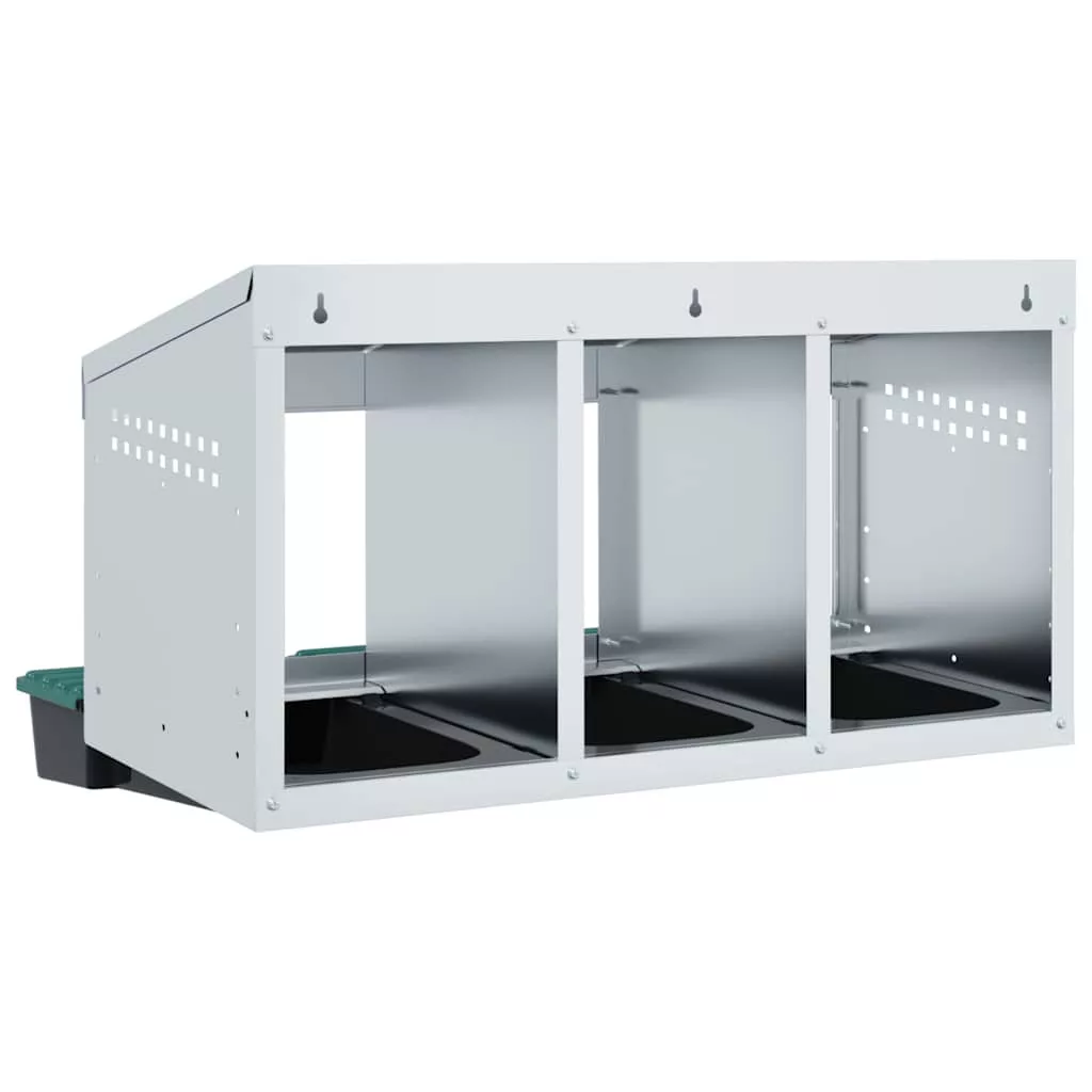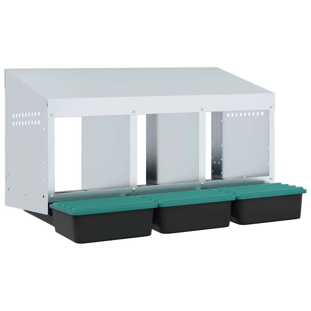 - Robusztus és tartós anyag: Horganyzott acélból és masszív polipropilén műanyagból készült, ez a fészkelő láda tartós használatra készült, hosszú távú teljesítményt és védelmet nyújt csirkéinek a zord kültéri körülményekkel szemben.