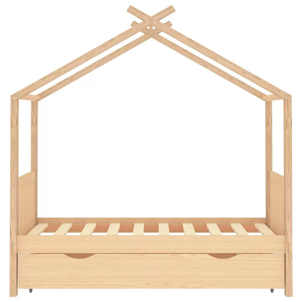 Az ágy okosan megtervezett, faház stílusú kerettel rendelkezik, ahová ágyfüggönyöket akaszthat, hogy magánéletet teremtsen gyermeke számára. Olvasókönyvként vagy játszóházként is használható. Tömör fenyőfából készült, ez az ágykeret rendkívül masszív és tartós. Az erős lécek biztosítják a szükséges tartást és nagyon kényelmesek. A mellékelt, 2 fogantyúval ellátott ágyfiók bőséges tárolóhelyet biztosít összehajtott ruhák, játékok stb. tárolására, így a szoba tiszta és rendezett marad. A könnyen gördülő kerekek szőnyegpadlón és fa padlón is gördülnek. Ez az ágykeret 80 x 160 cm-es matrachoz alkalmas.